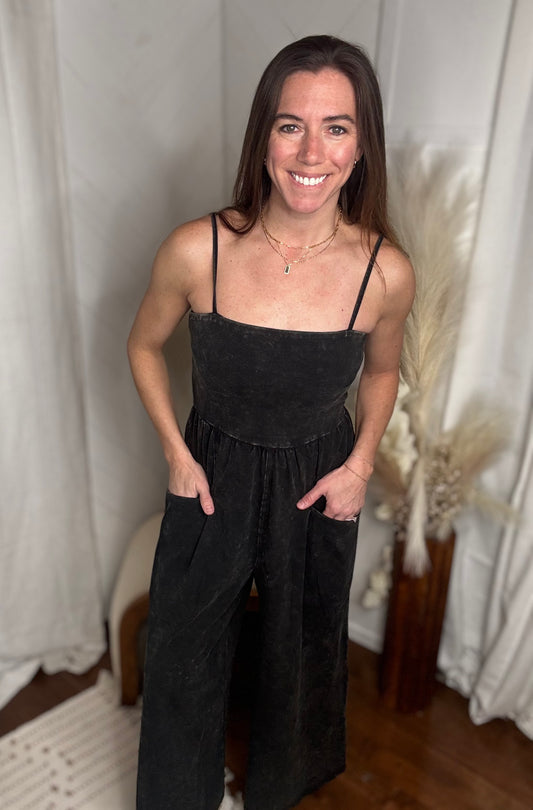 Dark Mineral Washed Wide Leg Jumpsuit