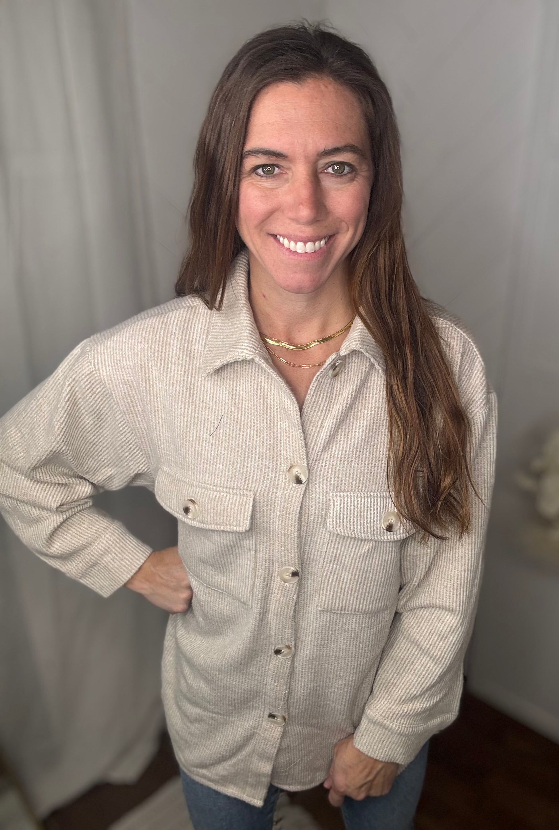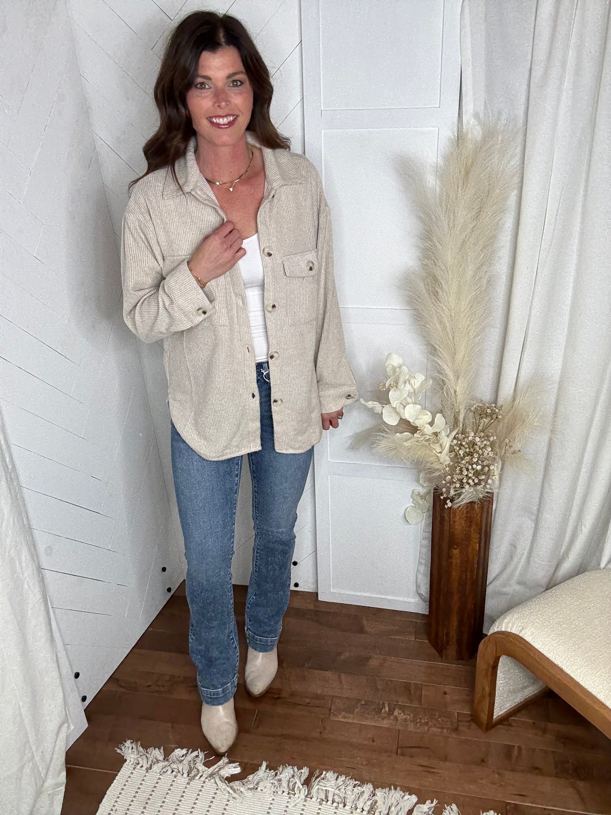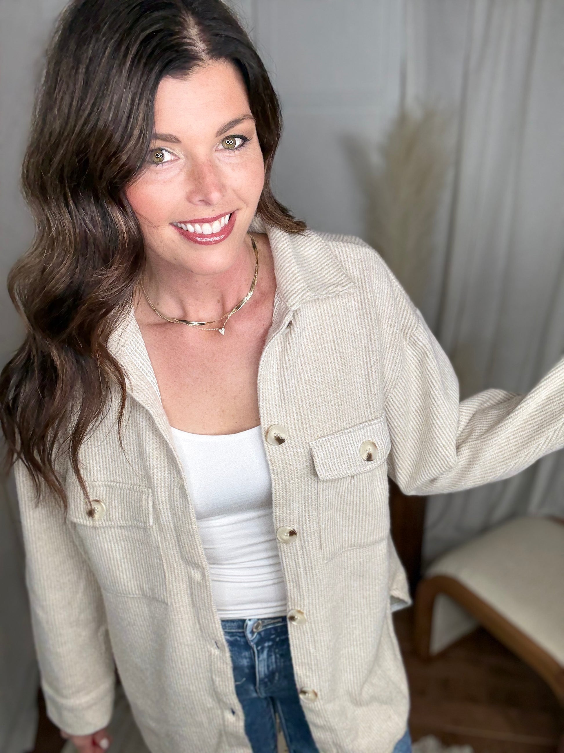 Brushed Waffle Shacket: Oatmeal