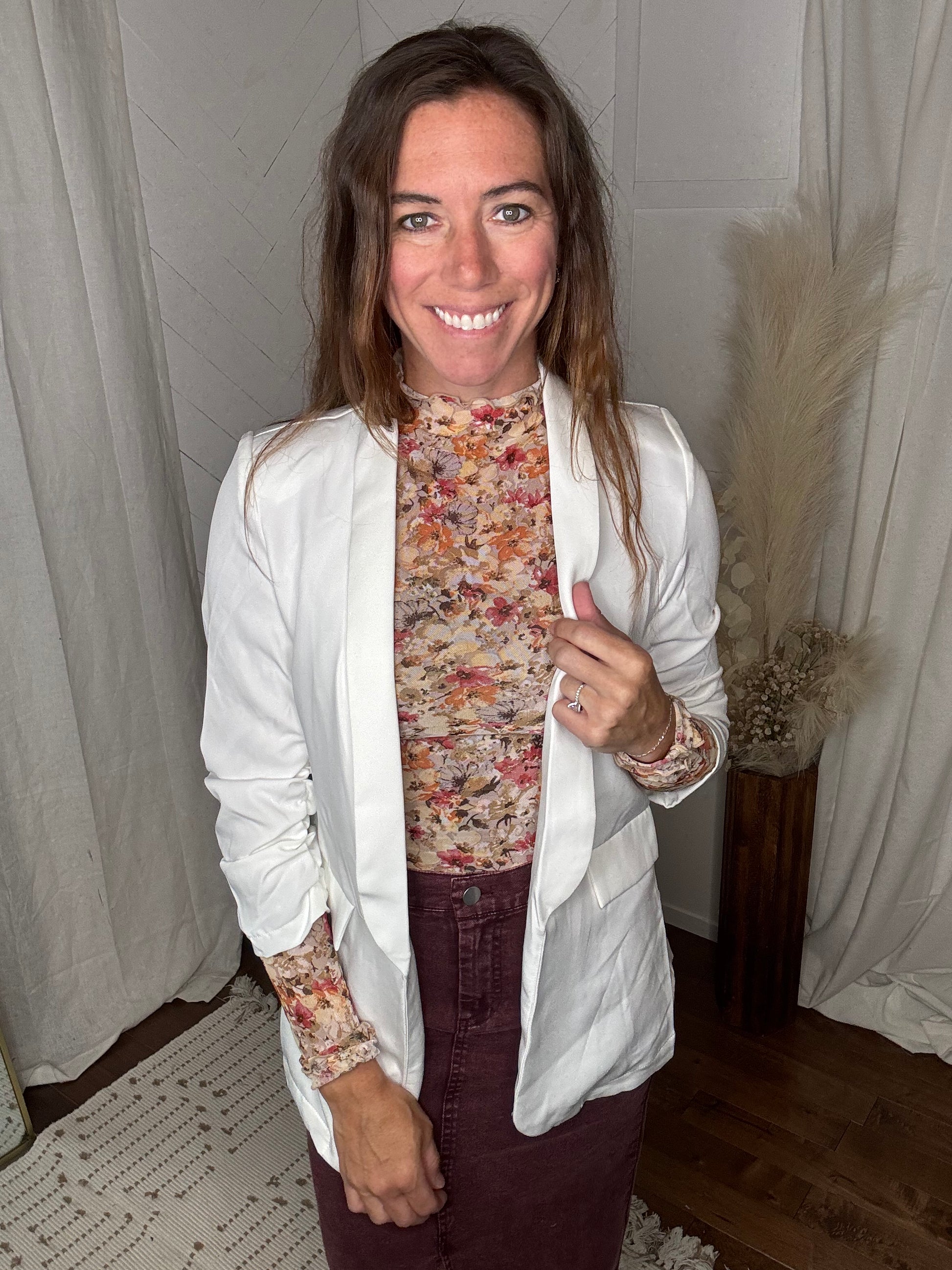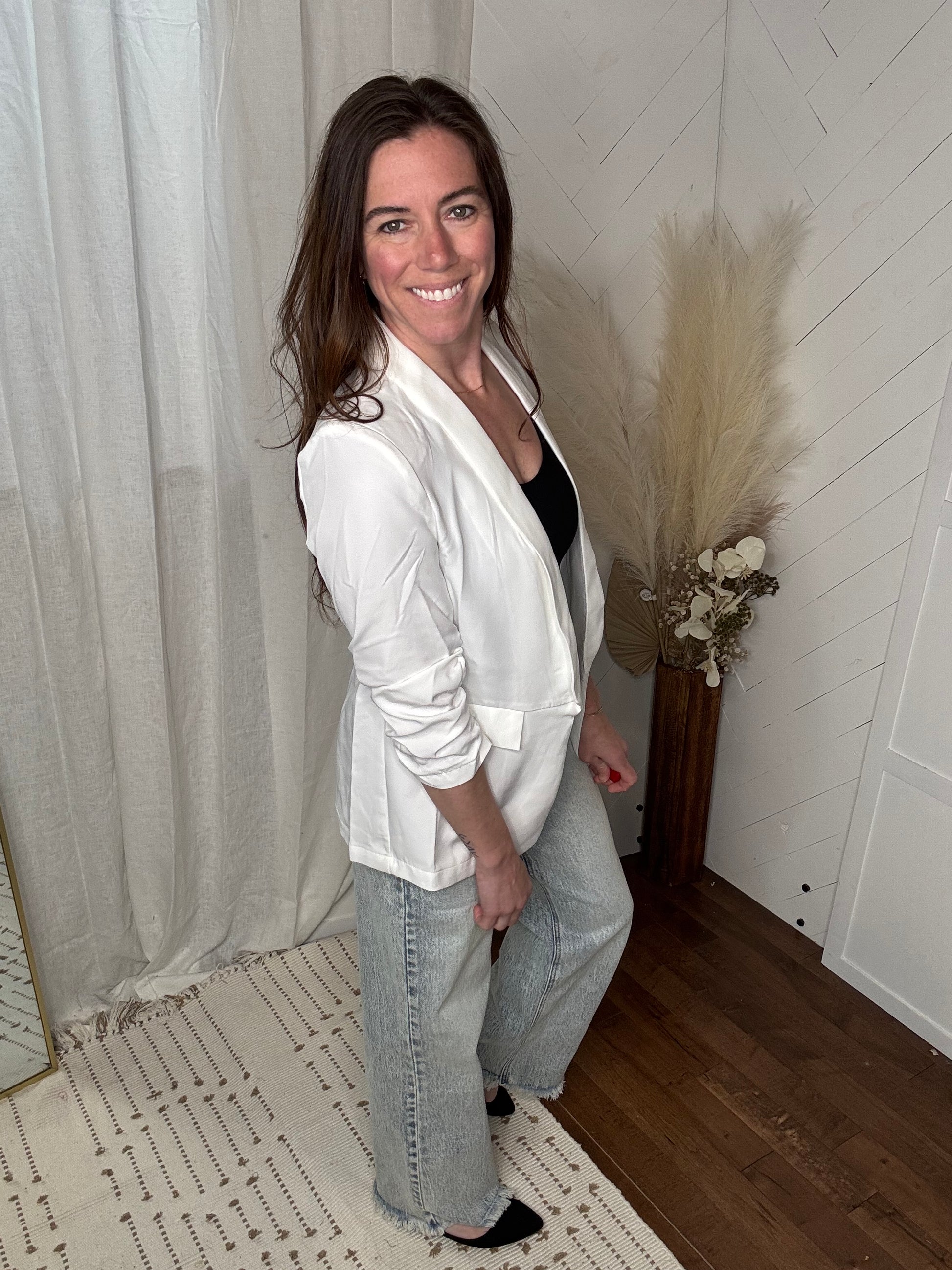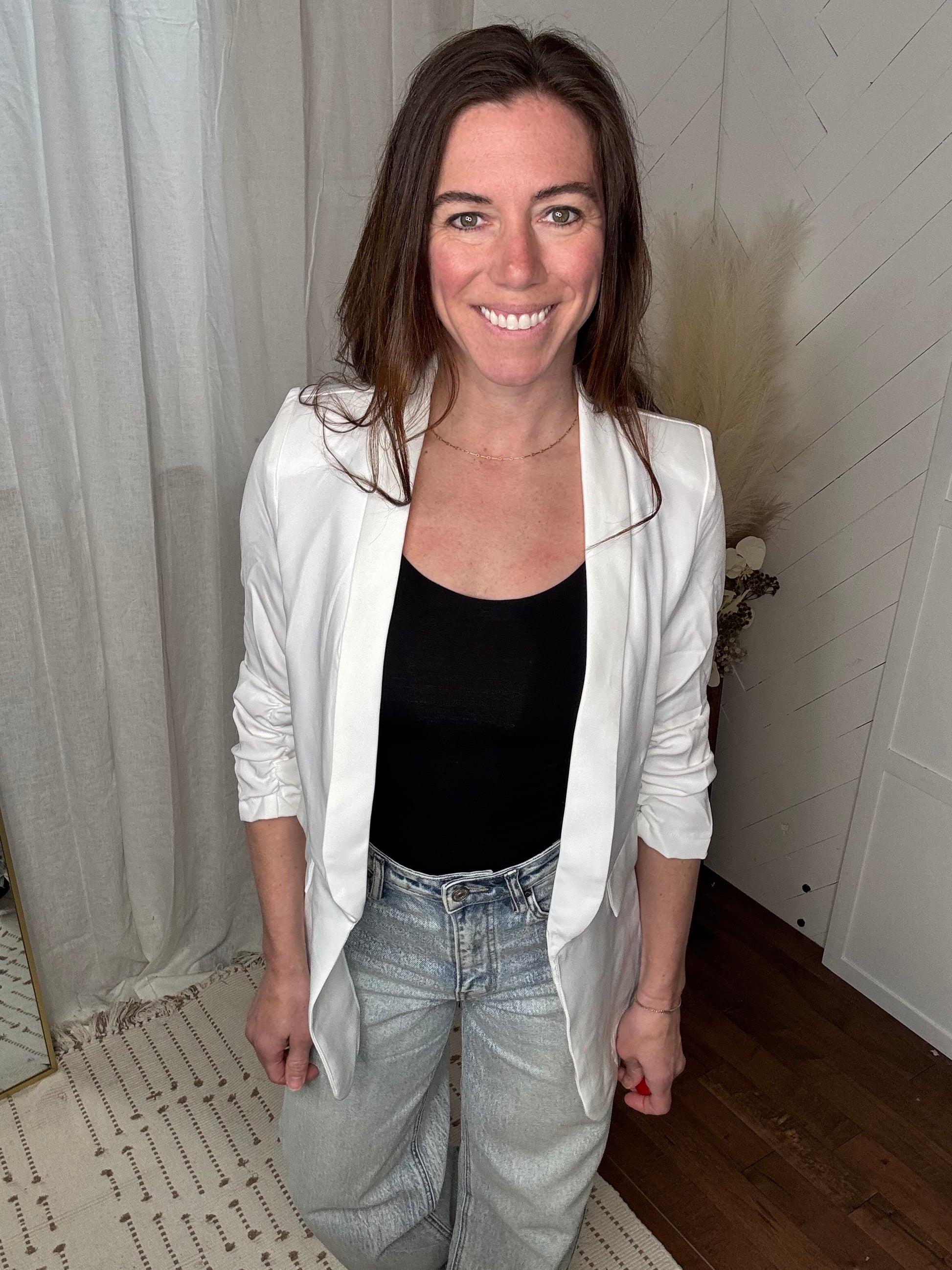 Smooth Slim Open Blazer with Bunched Sleeve Detail