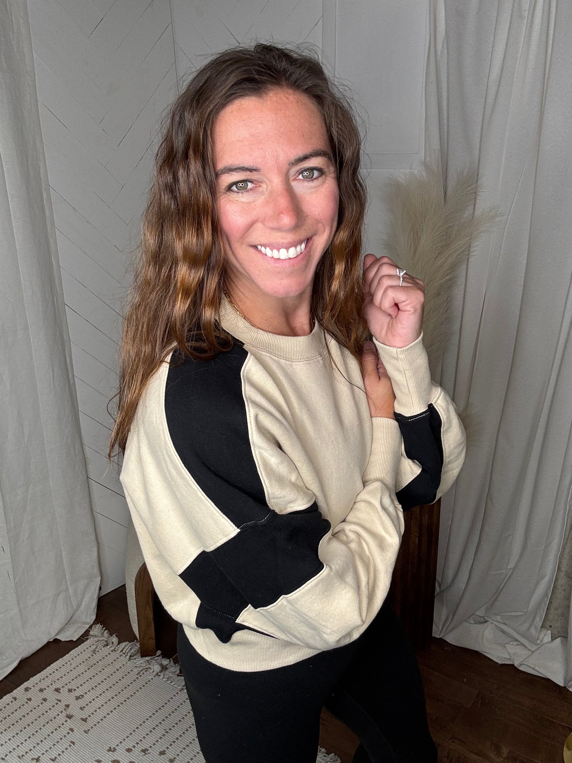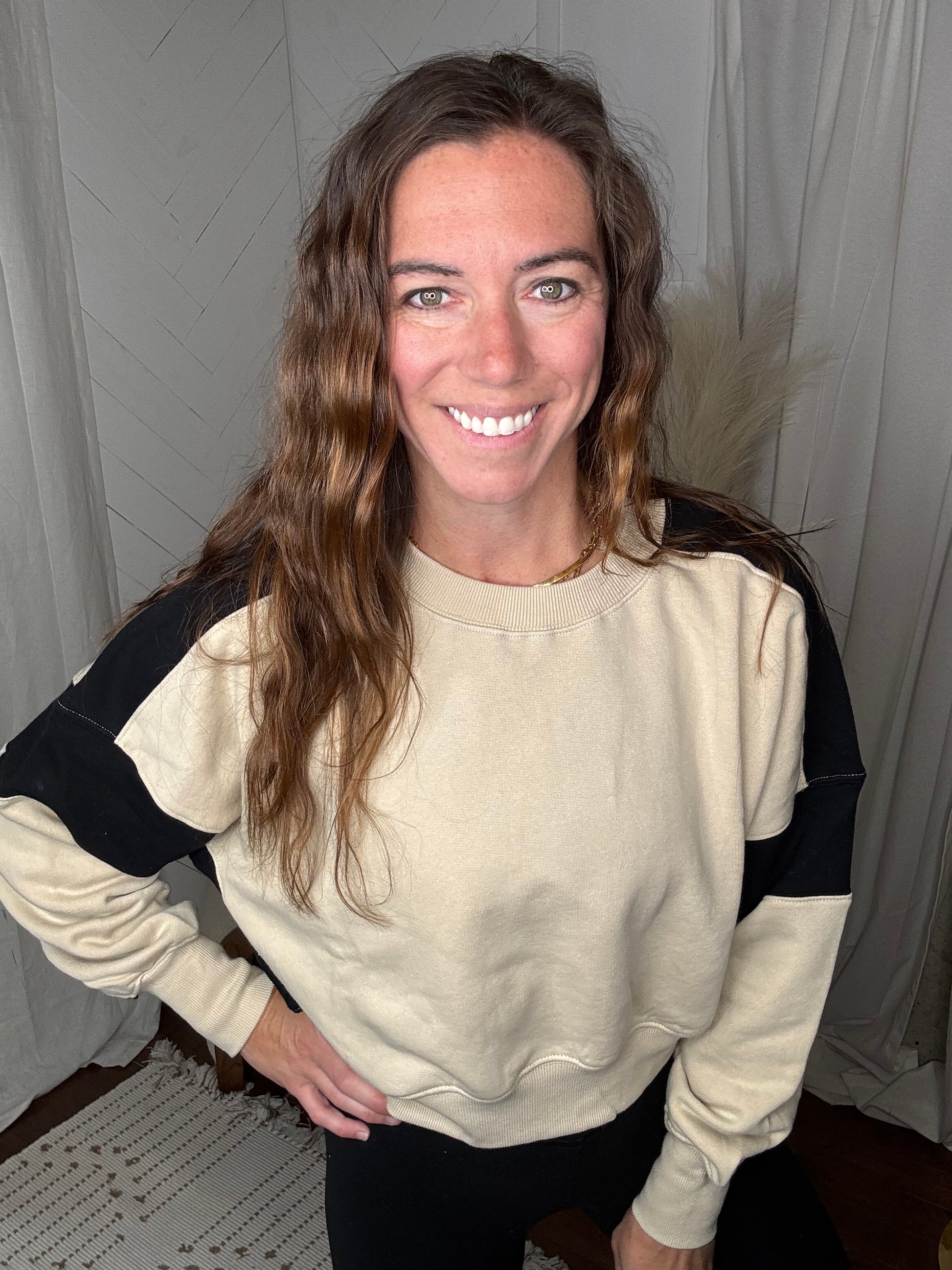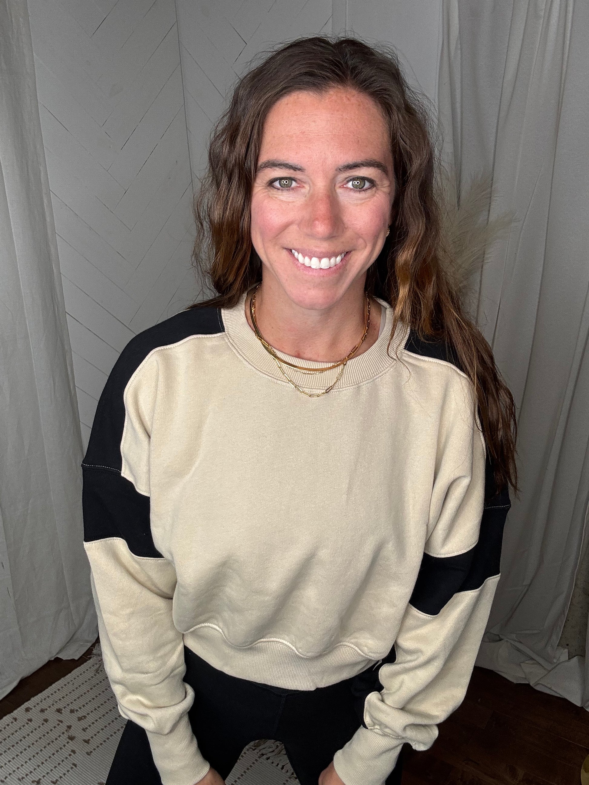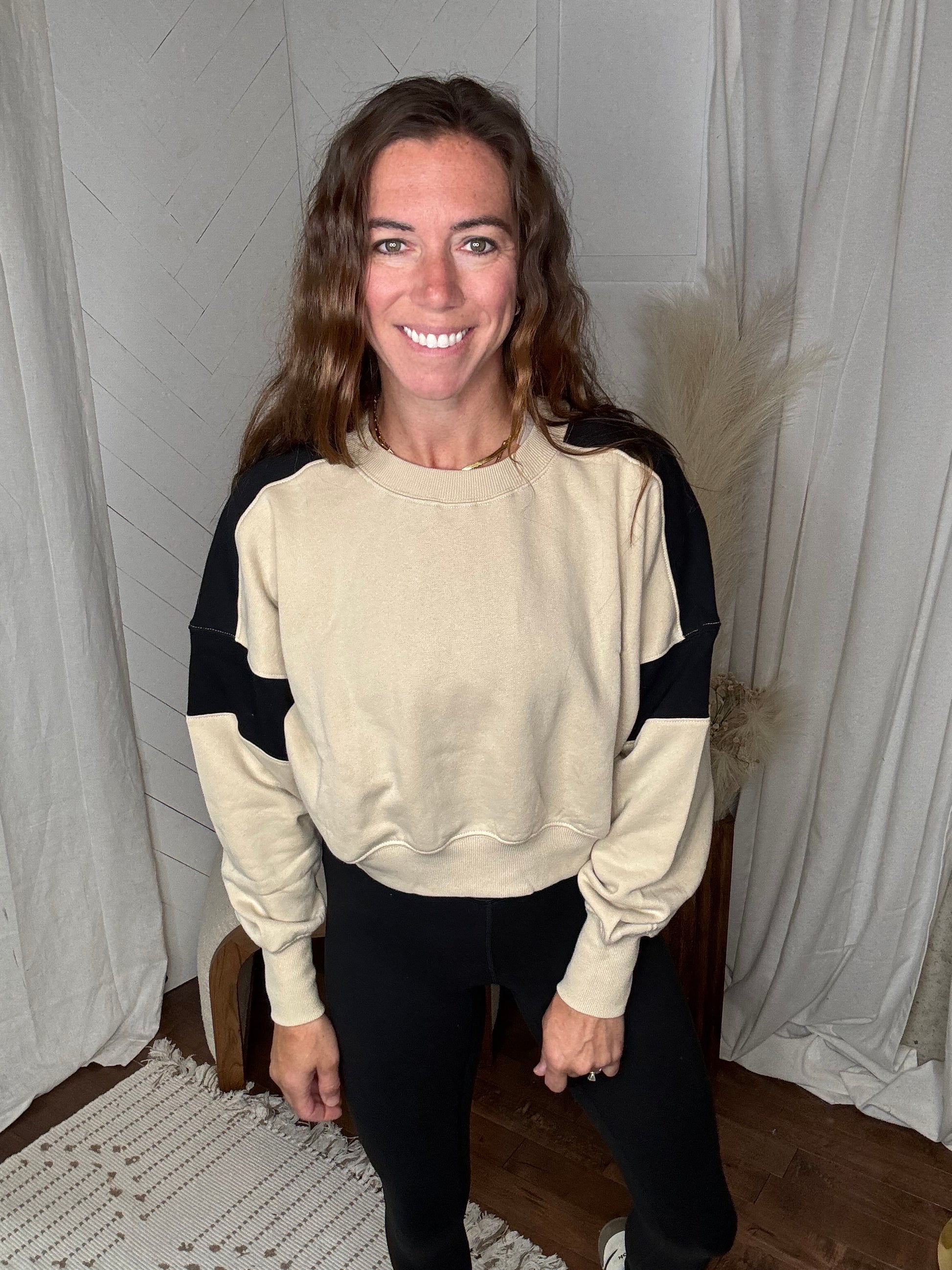 Elevate your sporty style. Designed for comfort and flair, this crewneck features bold contrast paneling that pairs perfectly with your favorite leggings. This sweatshirt is chic as it is comfortable. Ideal for active days or casual outings, it's your go-to for effortless athleisure vibes.