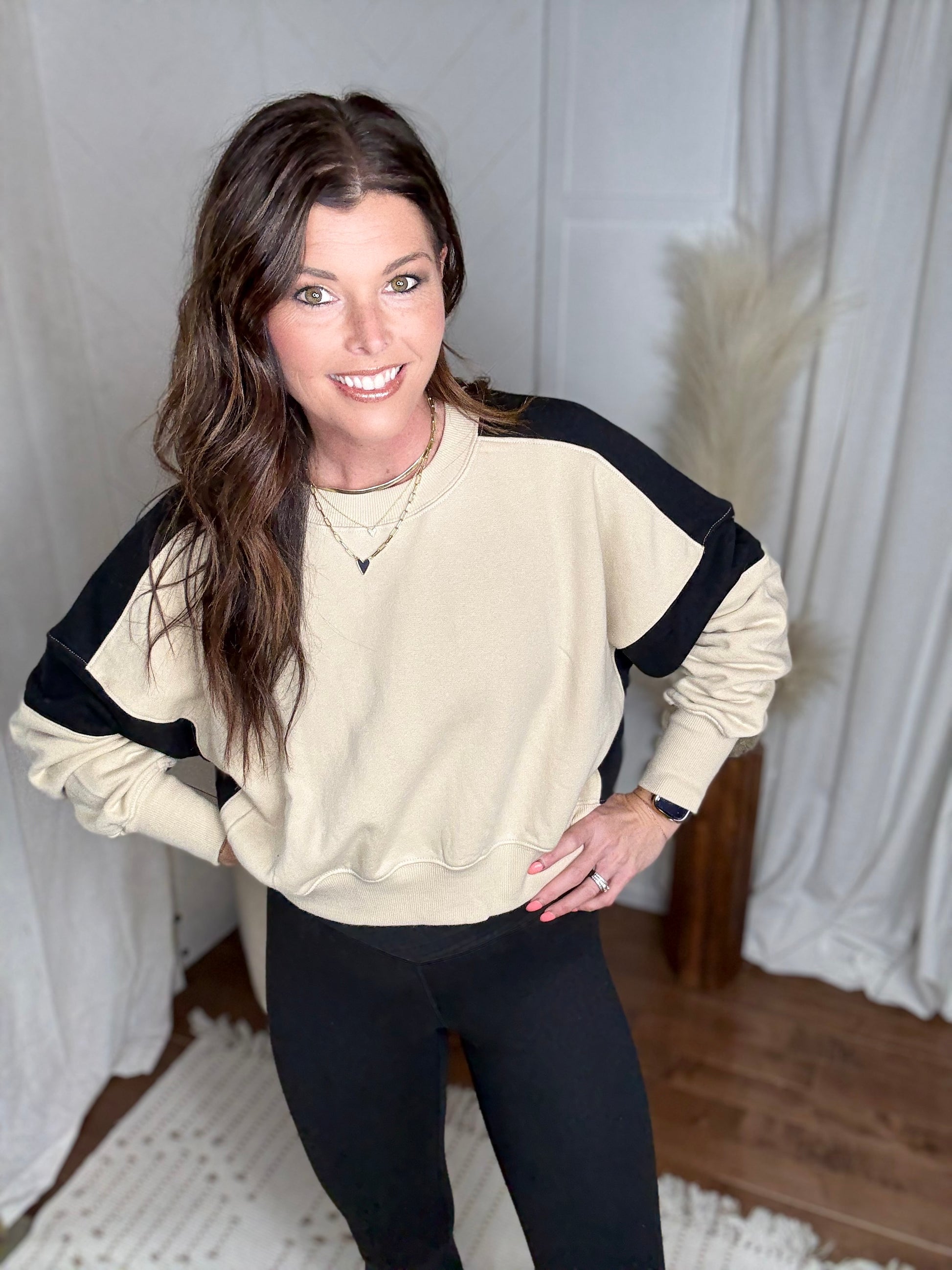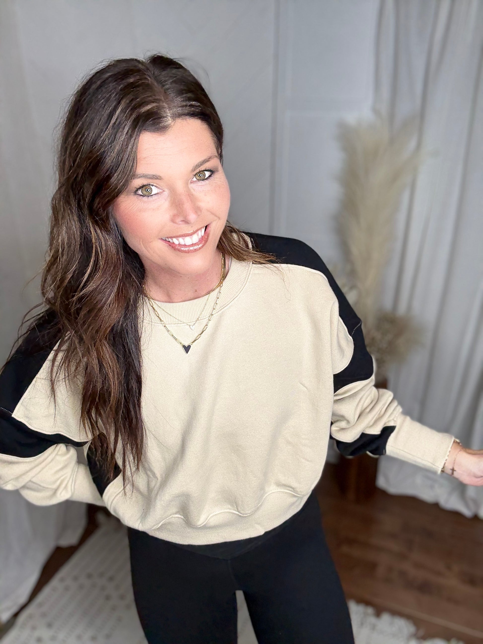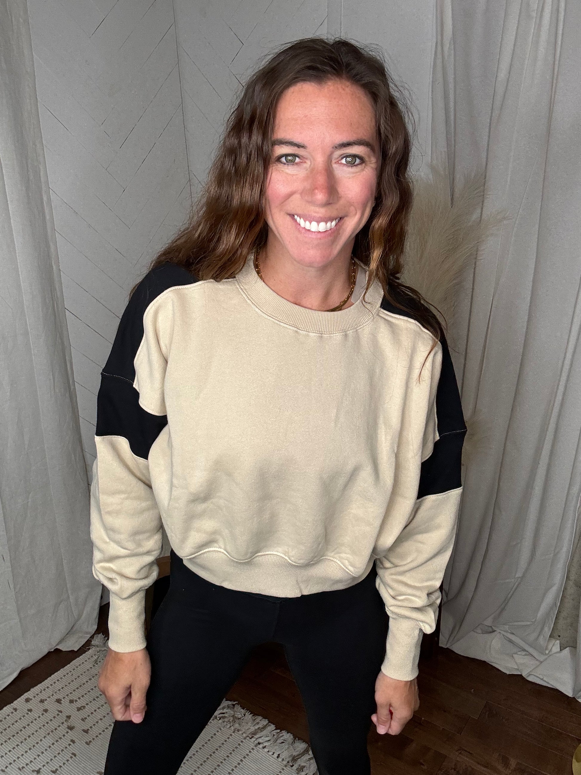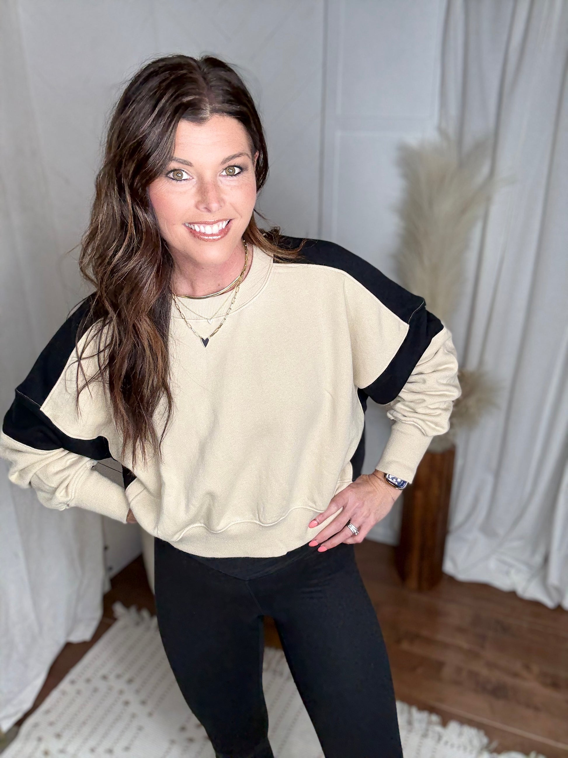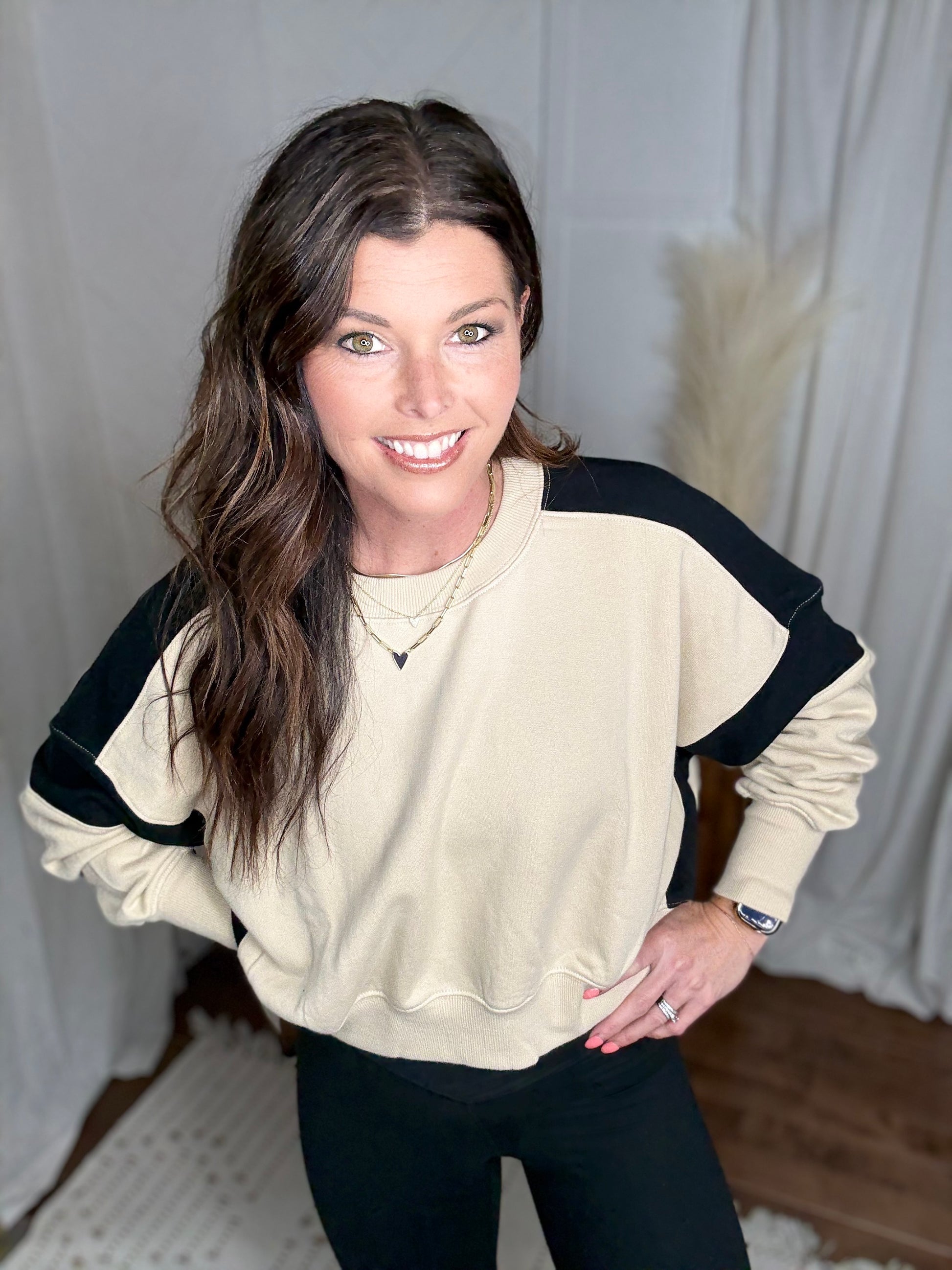 Elevate your sporty style. Designed for comfort and flair, this crewneck features bold contrast paneling that pairs perfectly with your favorite leggings. This sweatshirt is chic as it is comfortable. Ideal for active days or casual outings, it's your go-to for effortless athleisure vibes.