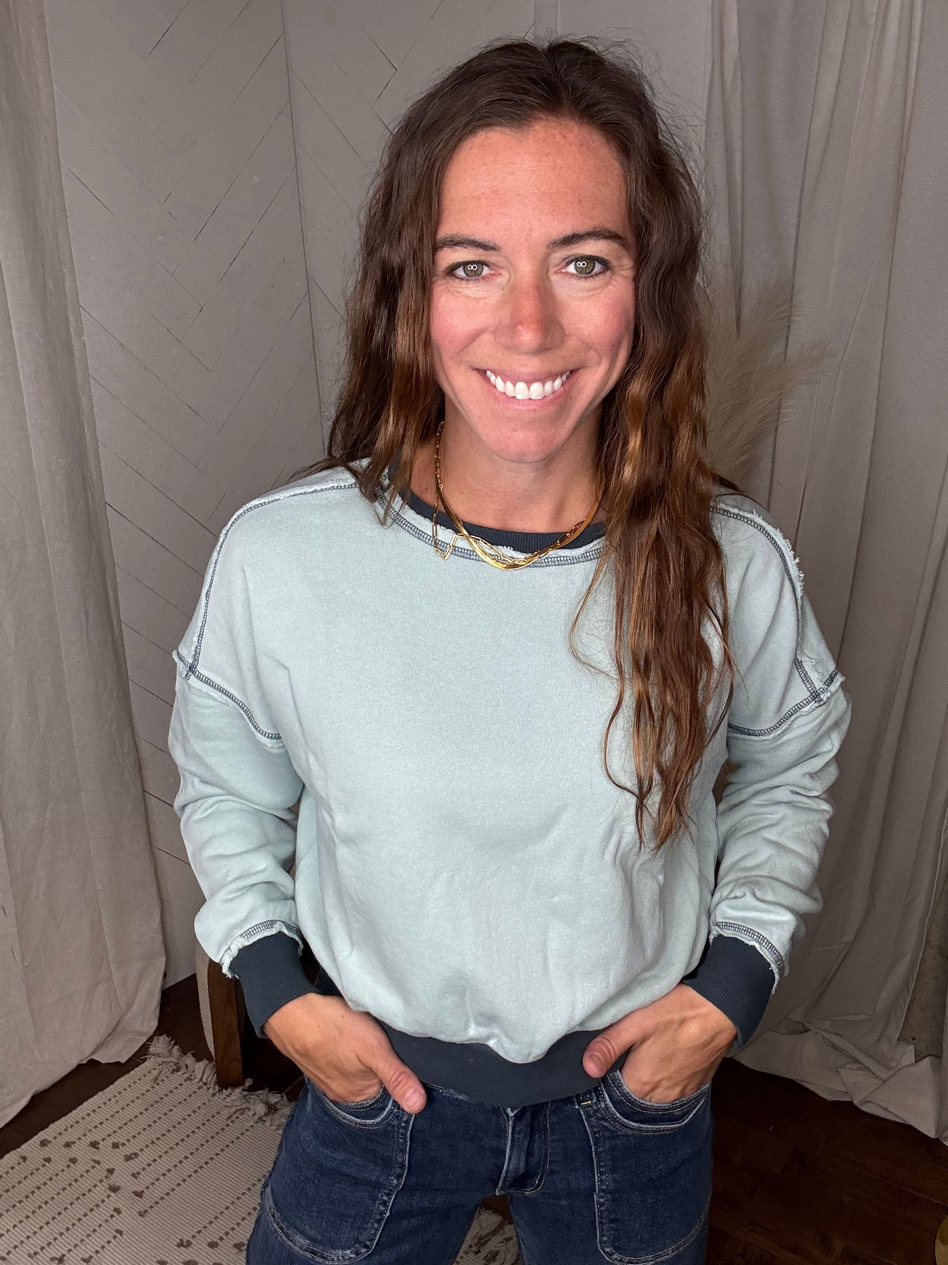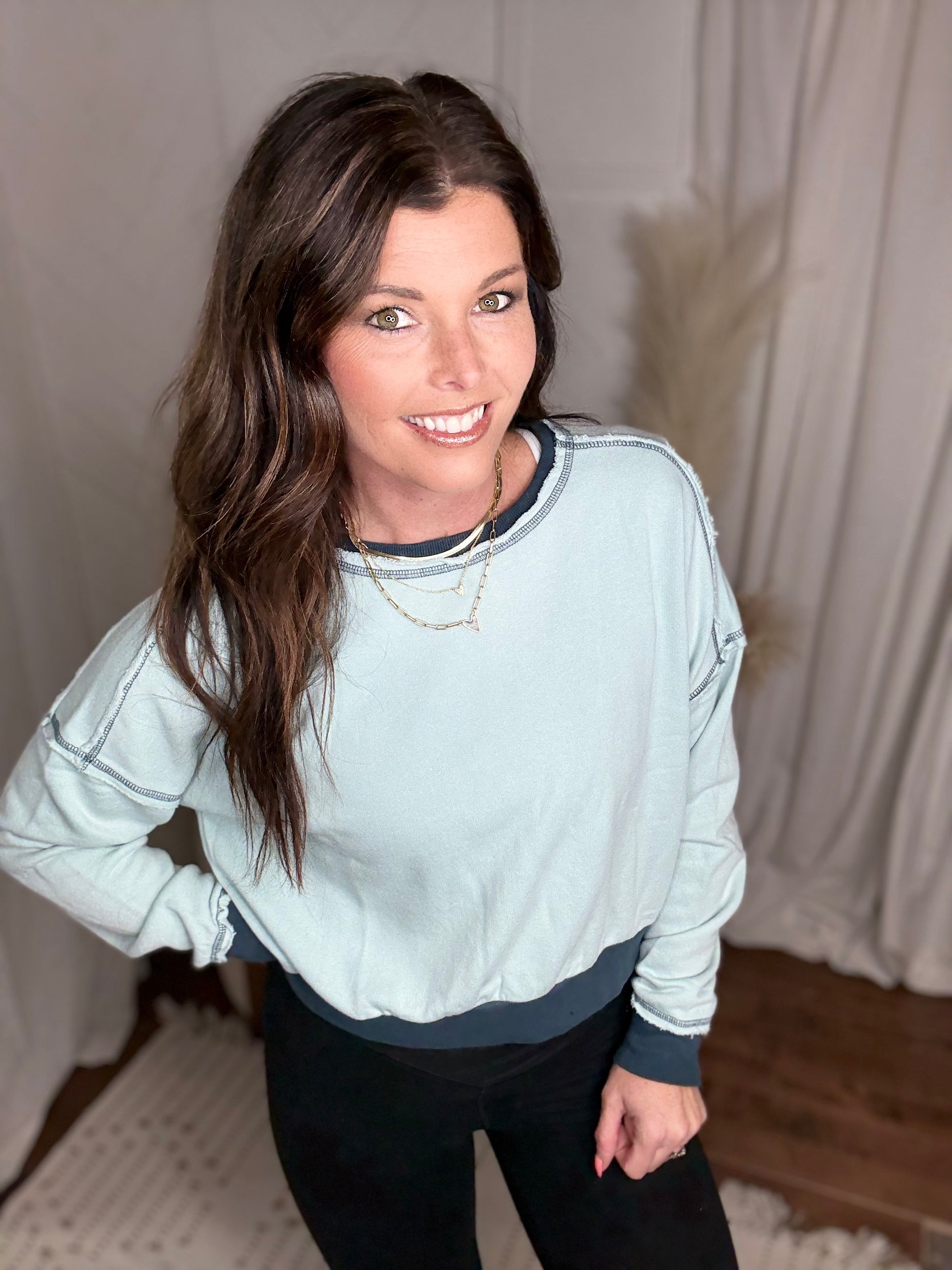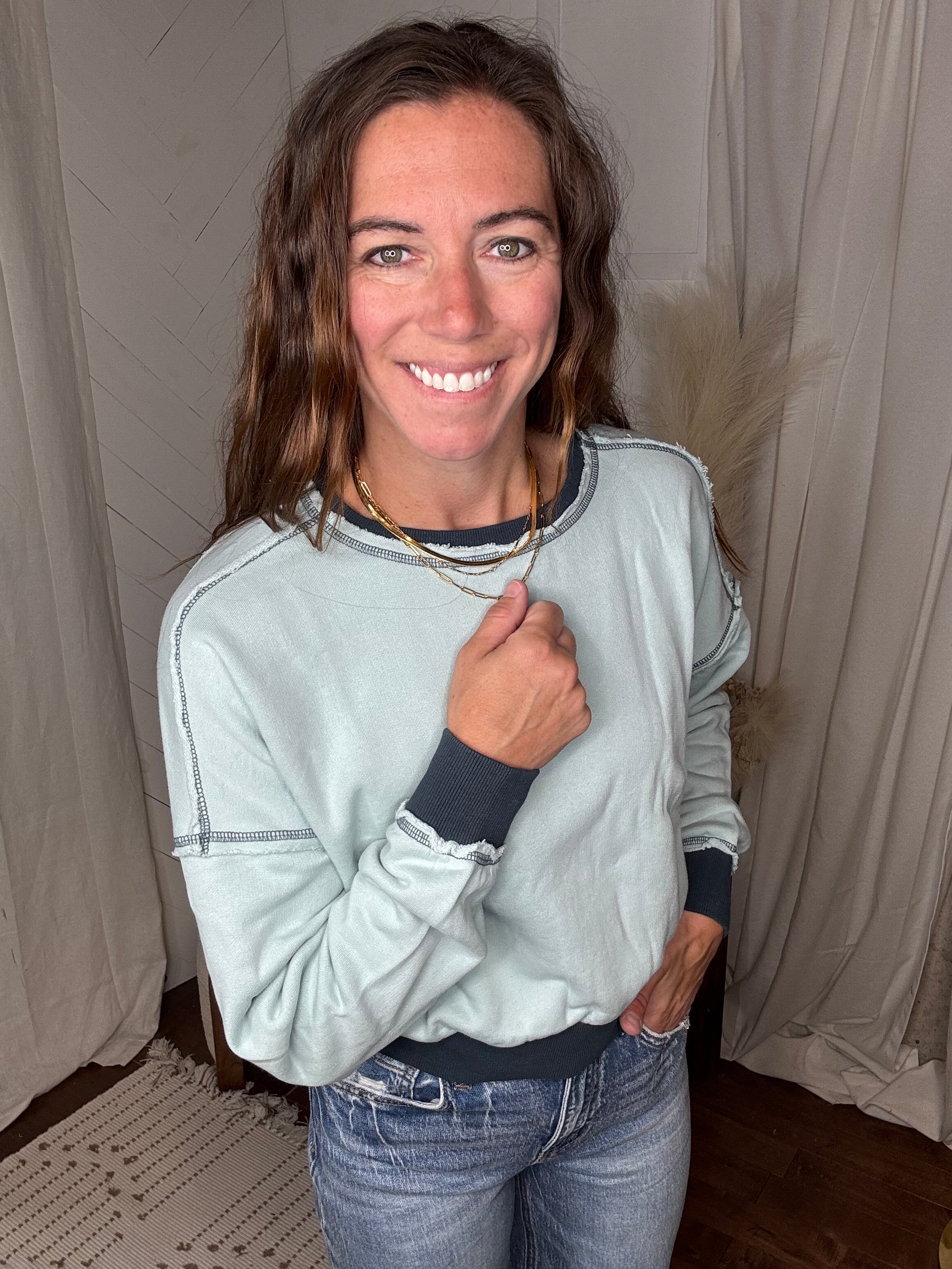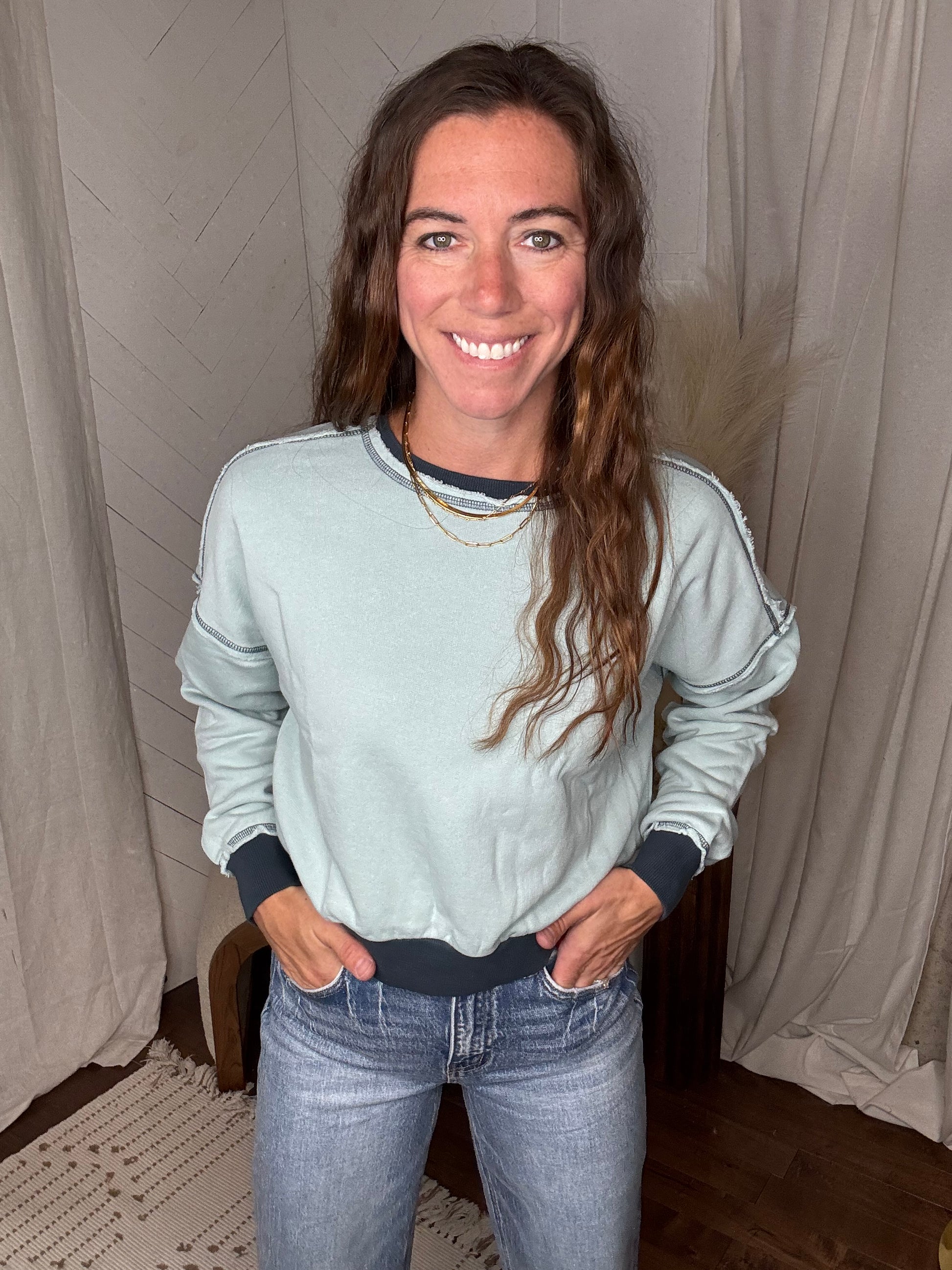Vintage energy with a modern twist. Mineral-washed for a soft, worn-in feel, this boxy-fit crewneck sweatshirt features raw edge detailing and bold contrast rib bands at the neck, cuffs, and hem.