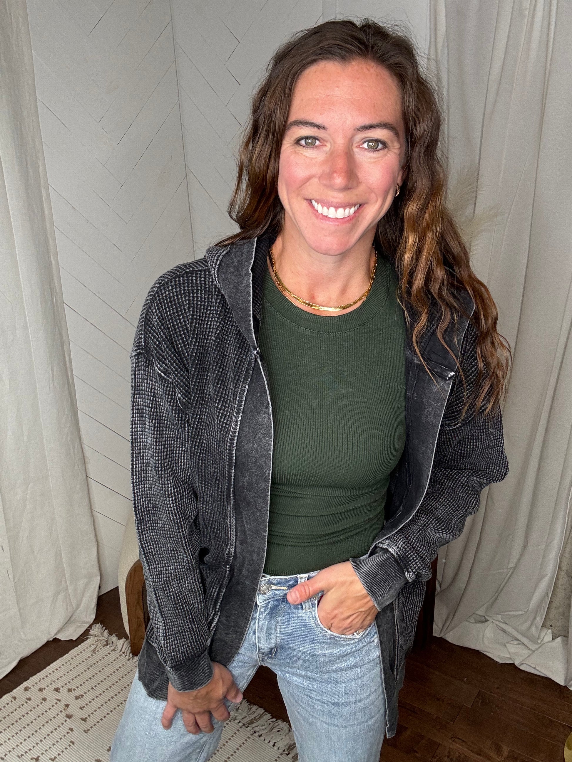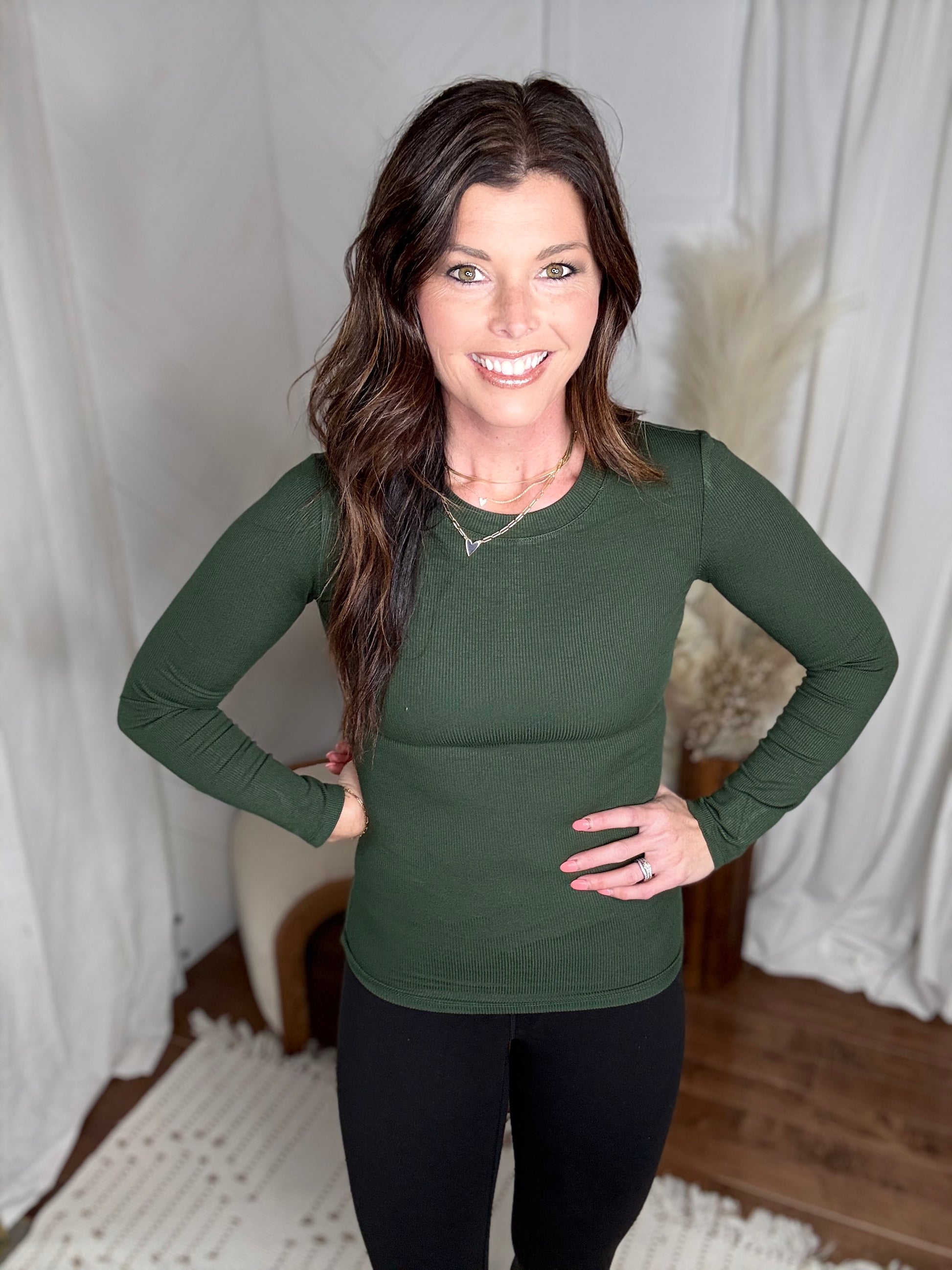 Deep Forest: Essential Long-Sleeved Ribbed Top