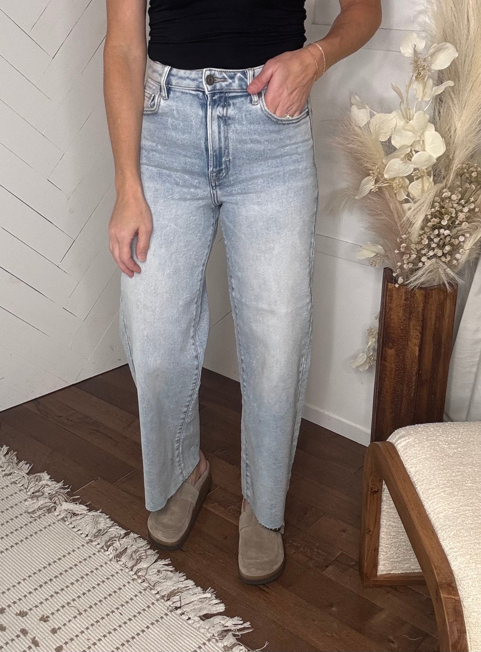 Your new go-to straight leg jeans—light wash, comfy fit, and easy to style for any season.