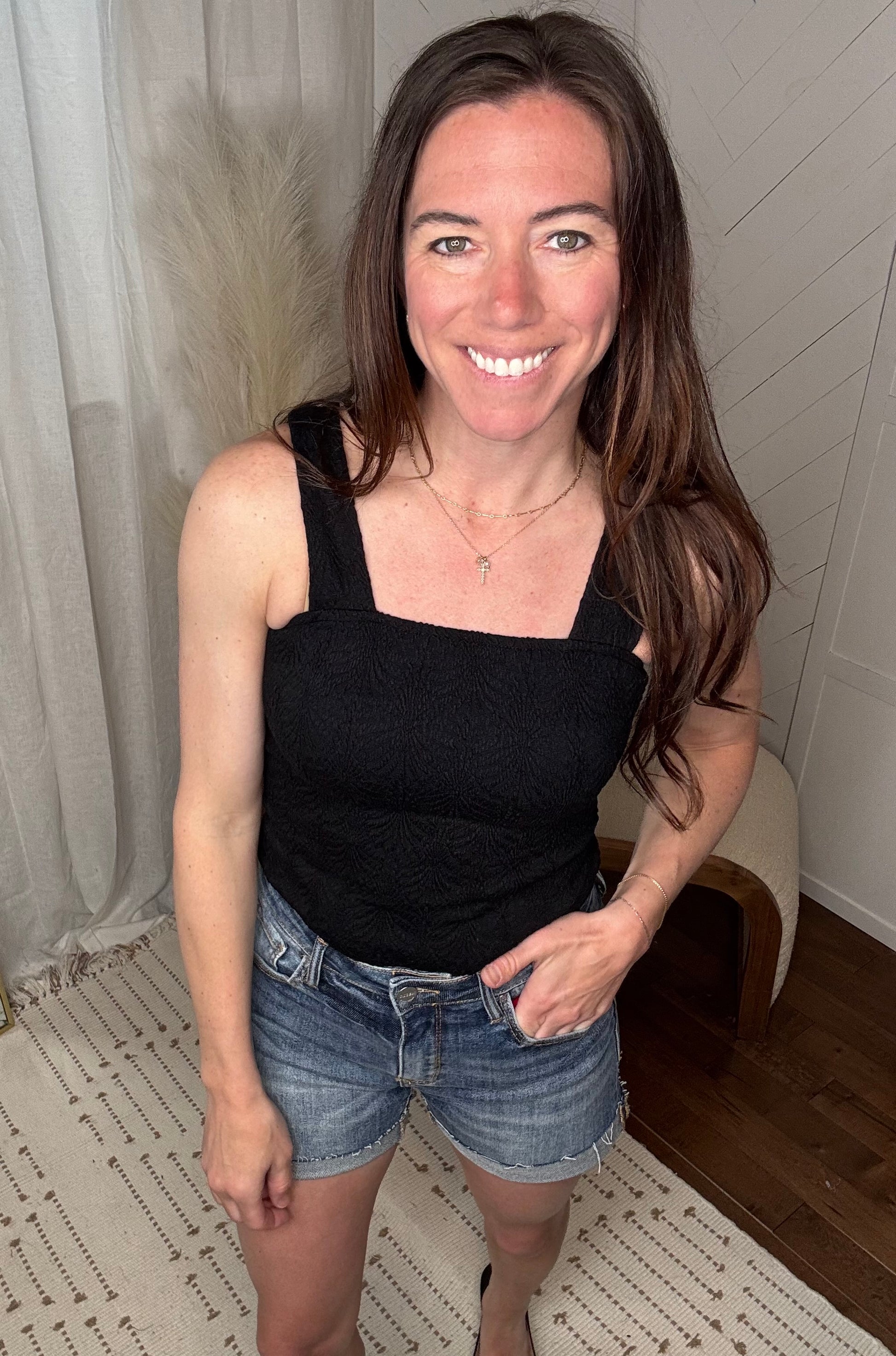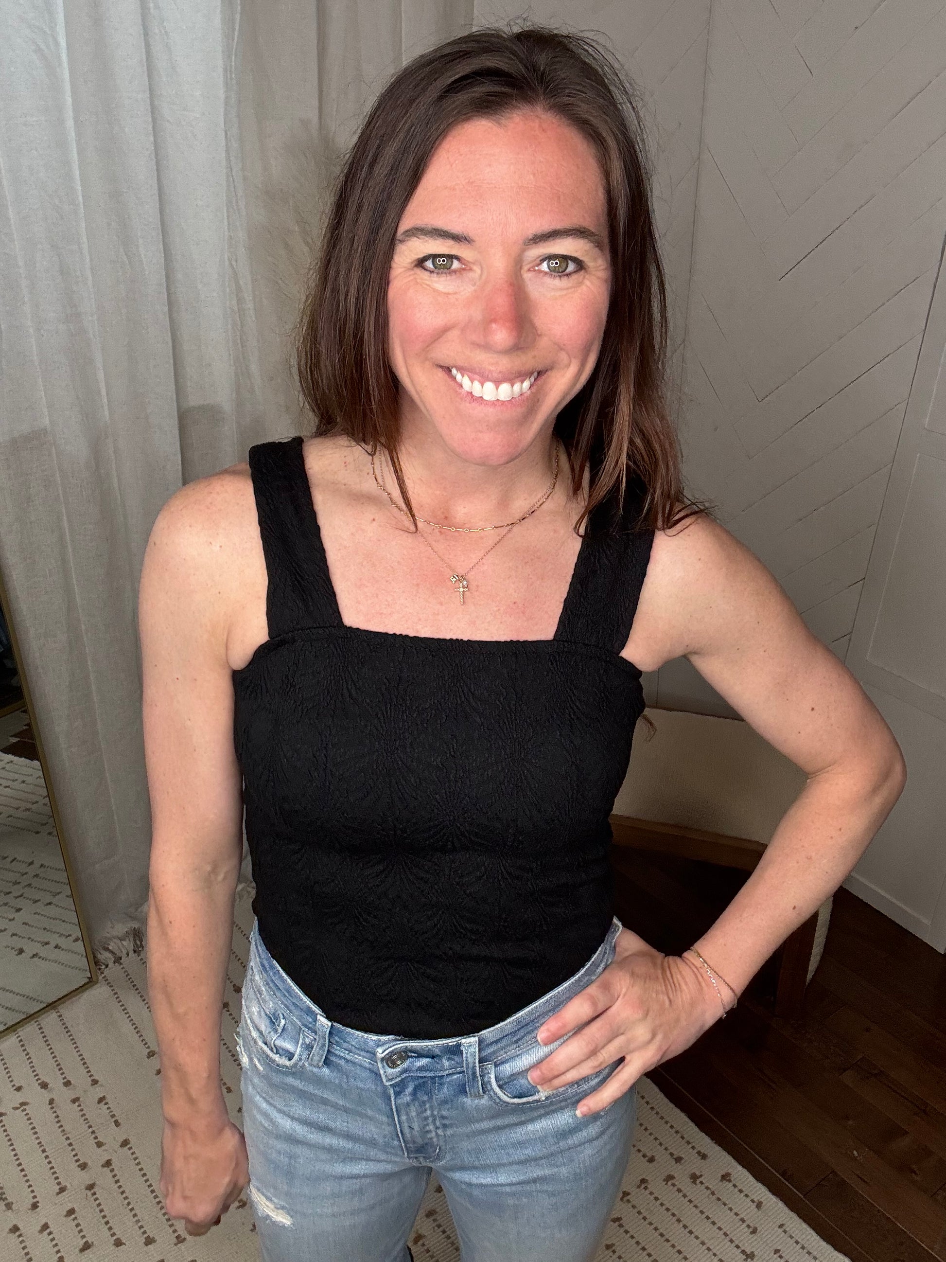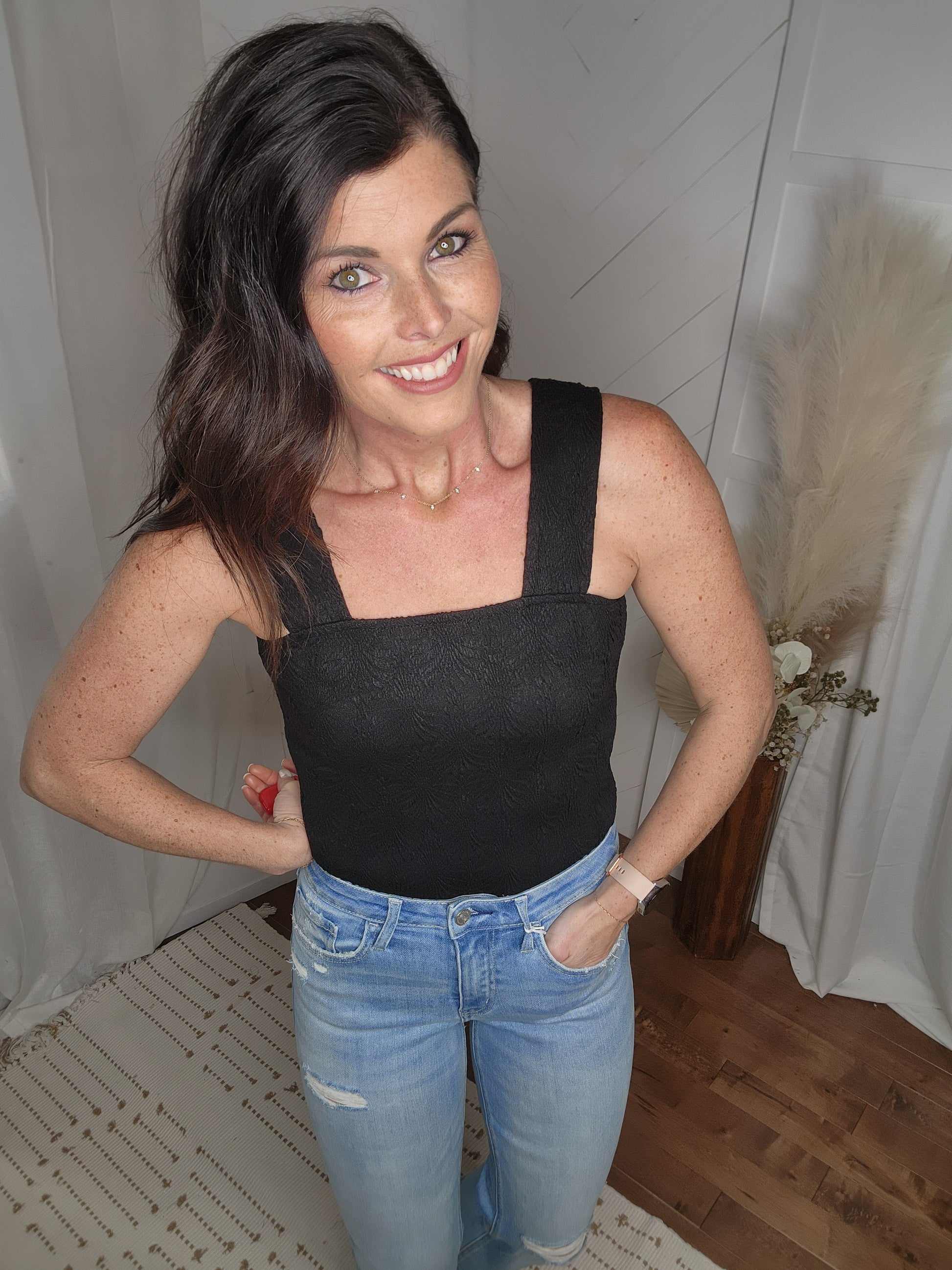 Black Floral Square Neck Tank