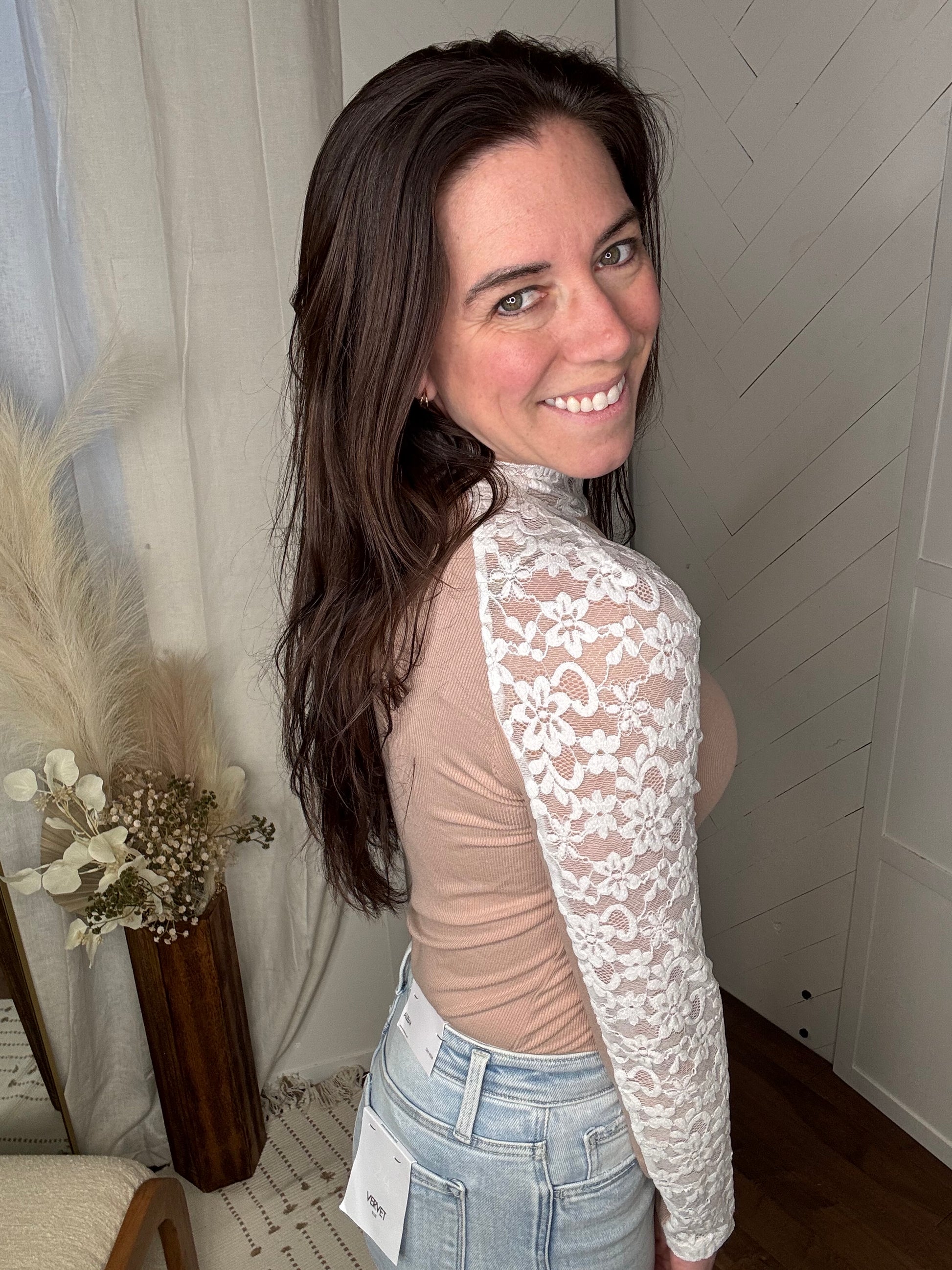 Blush Floral Lace Long Sleeve