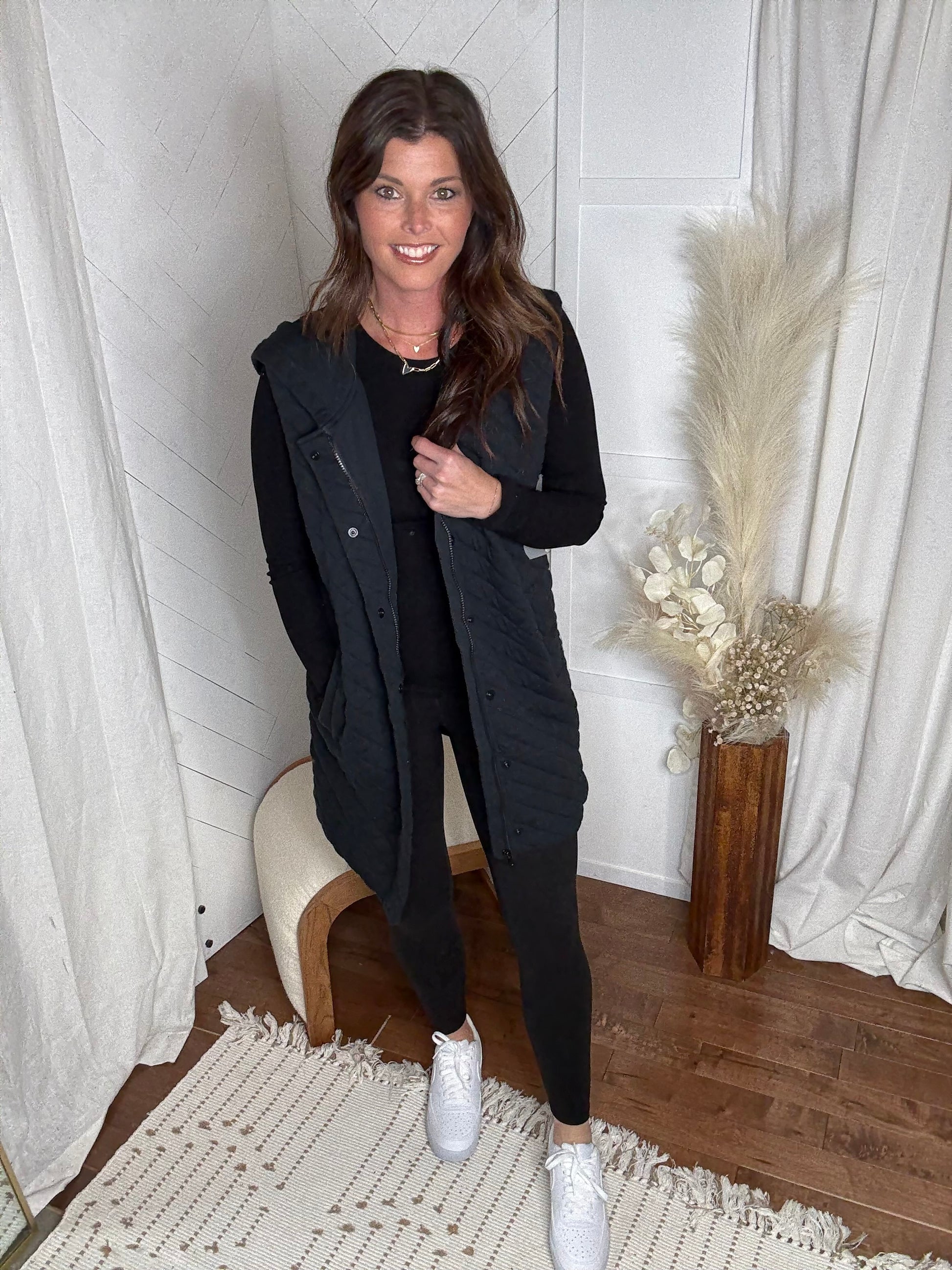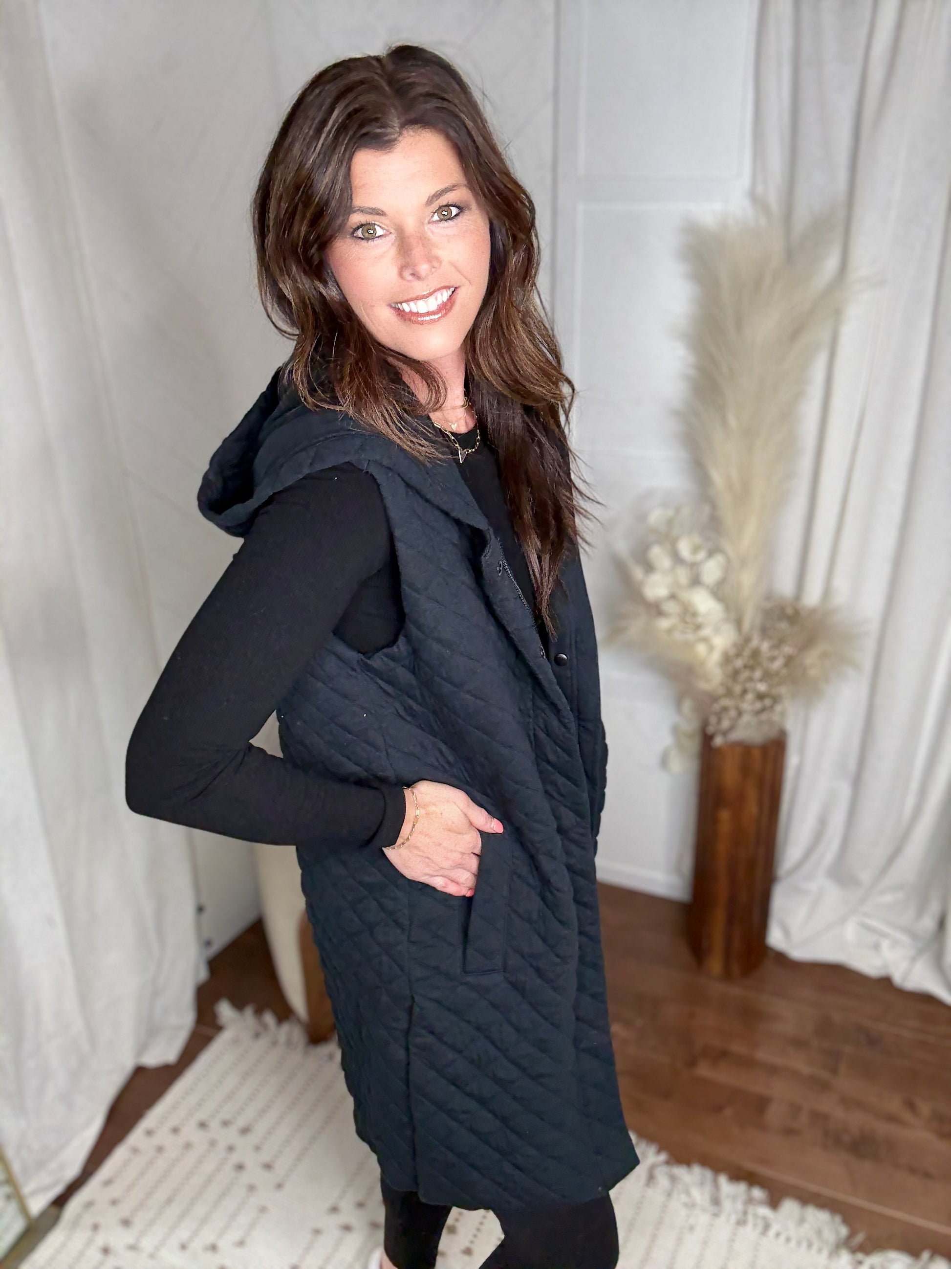 Longline Quilted Vest: Black
