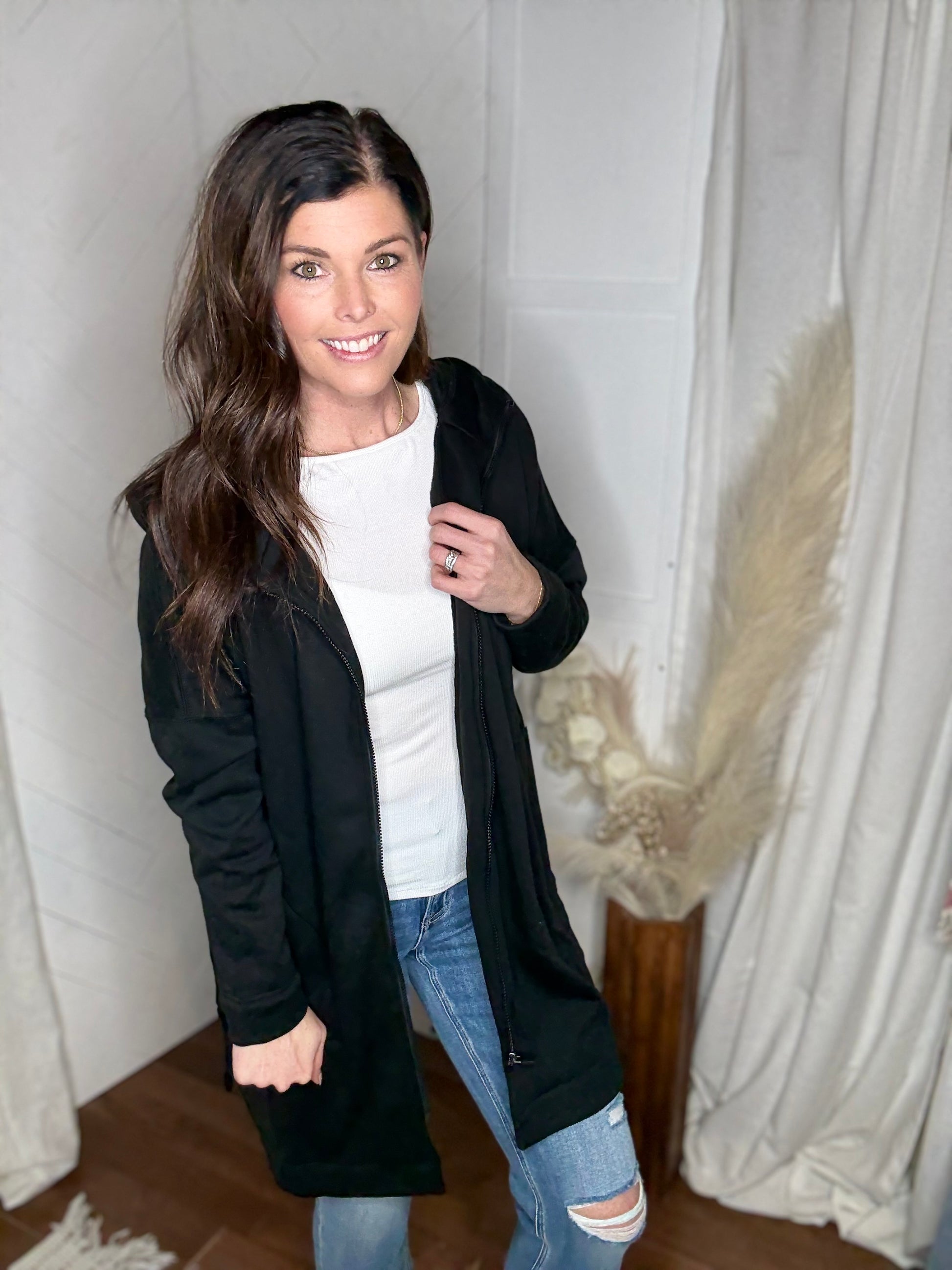 Black Longline Zip-Up Jacket