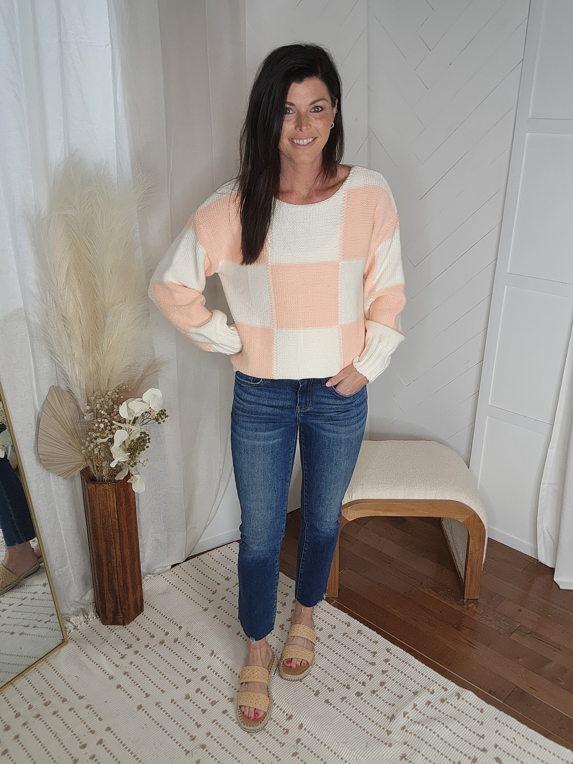 Mid rise crop bootcut jeans w a raw hem. COMFORT STRETCH DENIM