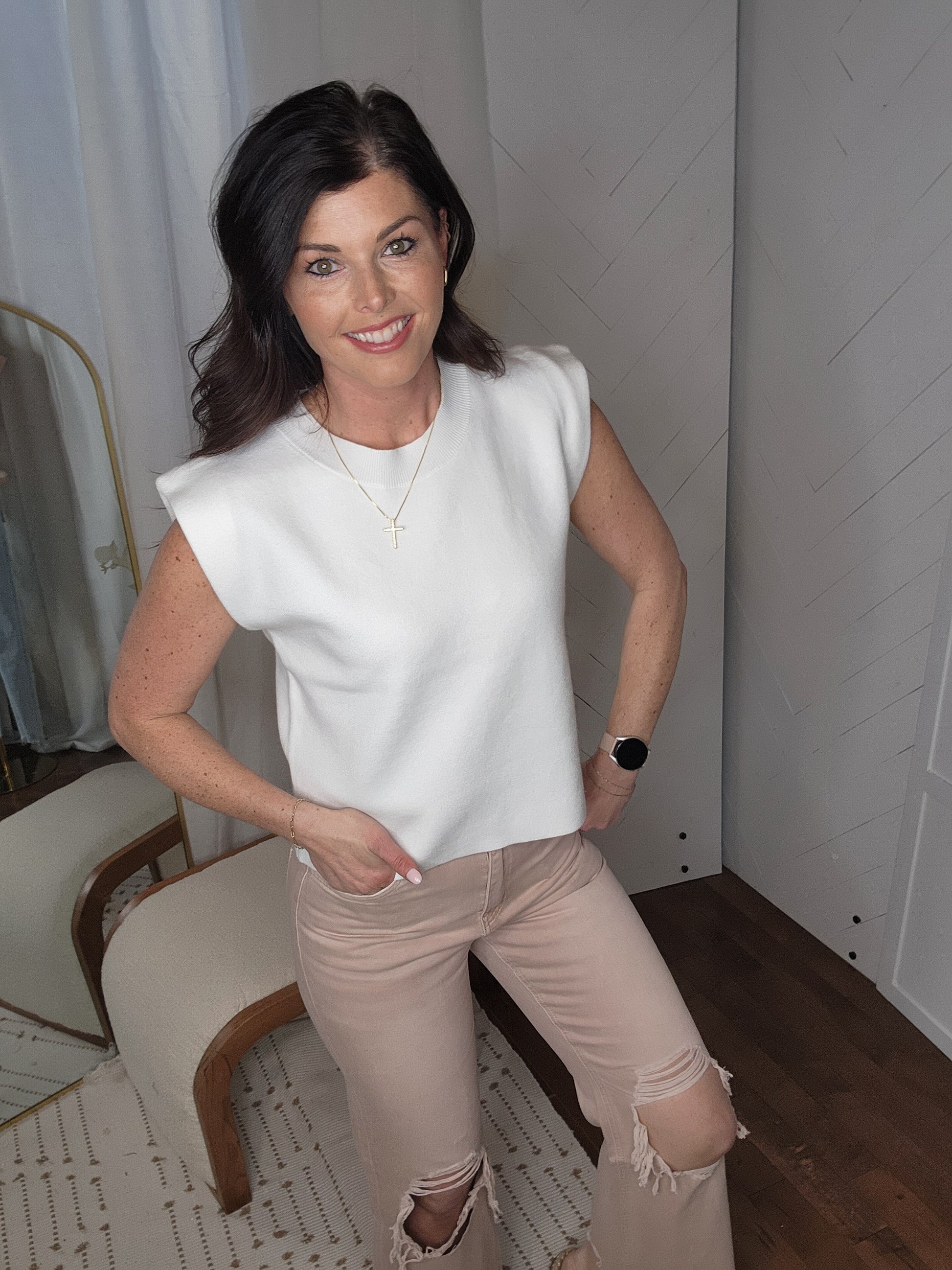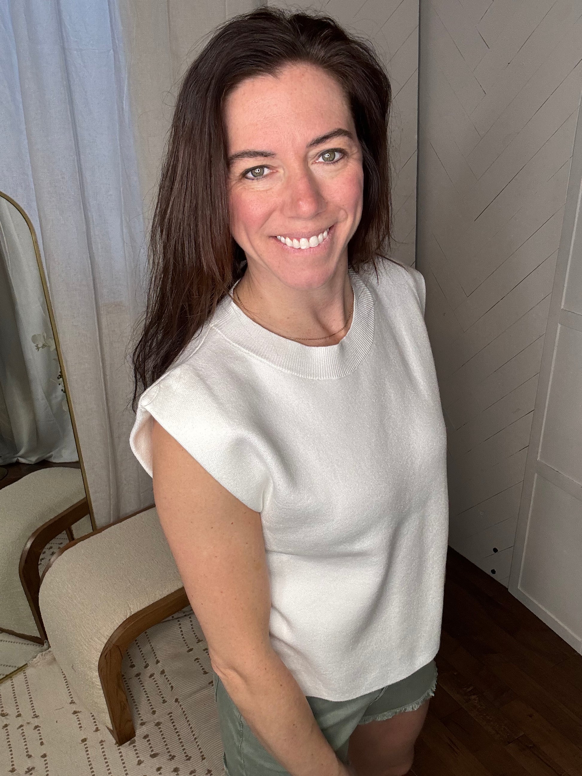 Hello to my new favorite office top. Soft sweater fabric, high in comfort and quality.