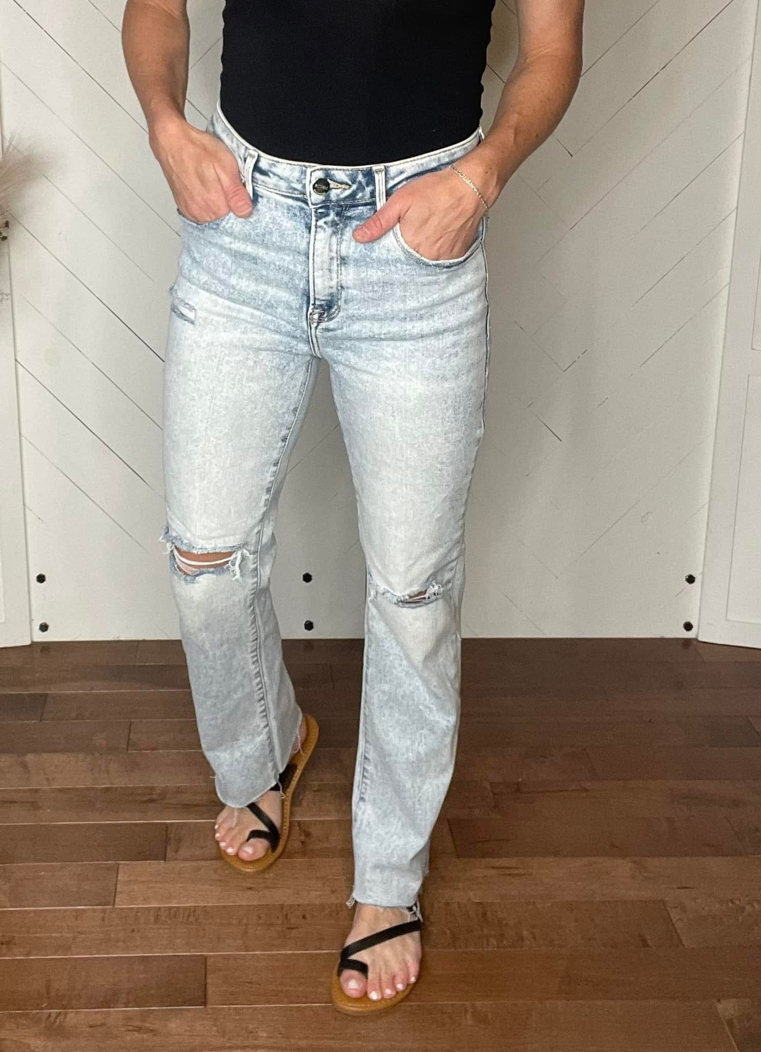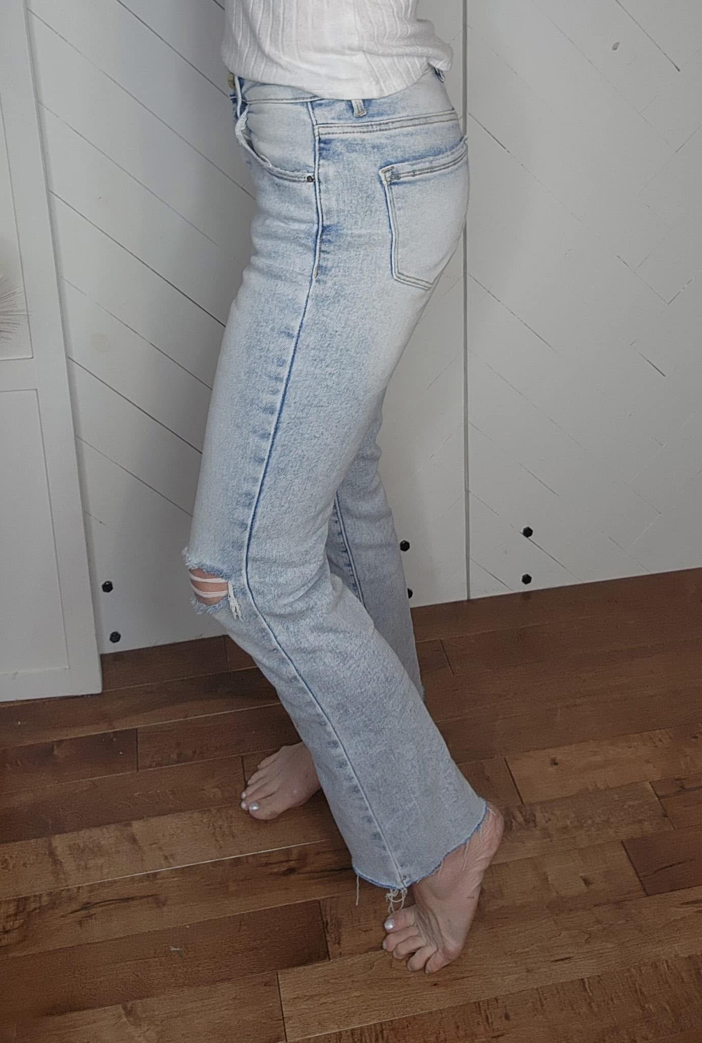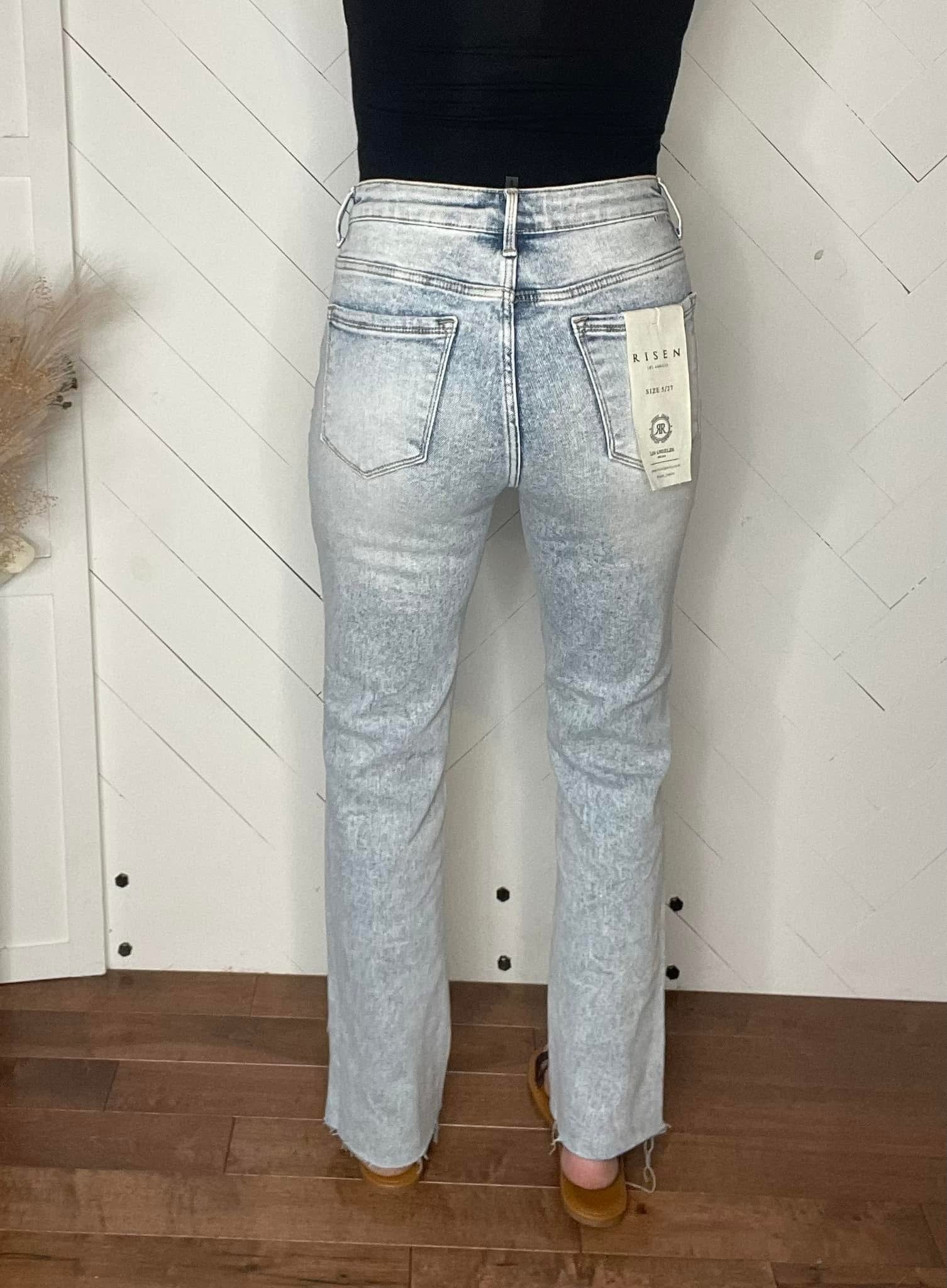 Risen: High Rise Straight Leg - stretch denim, distressed.