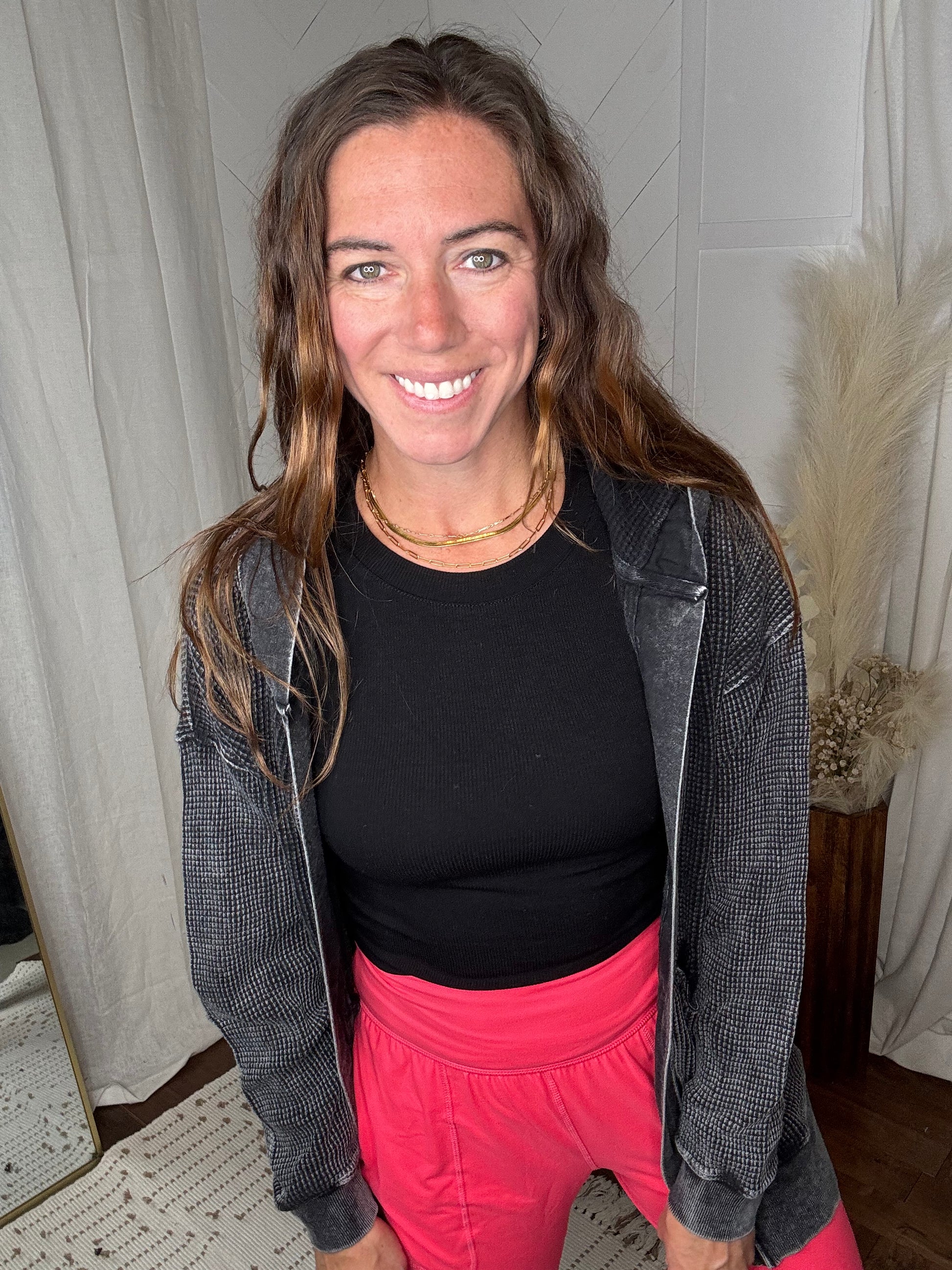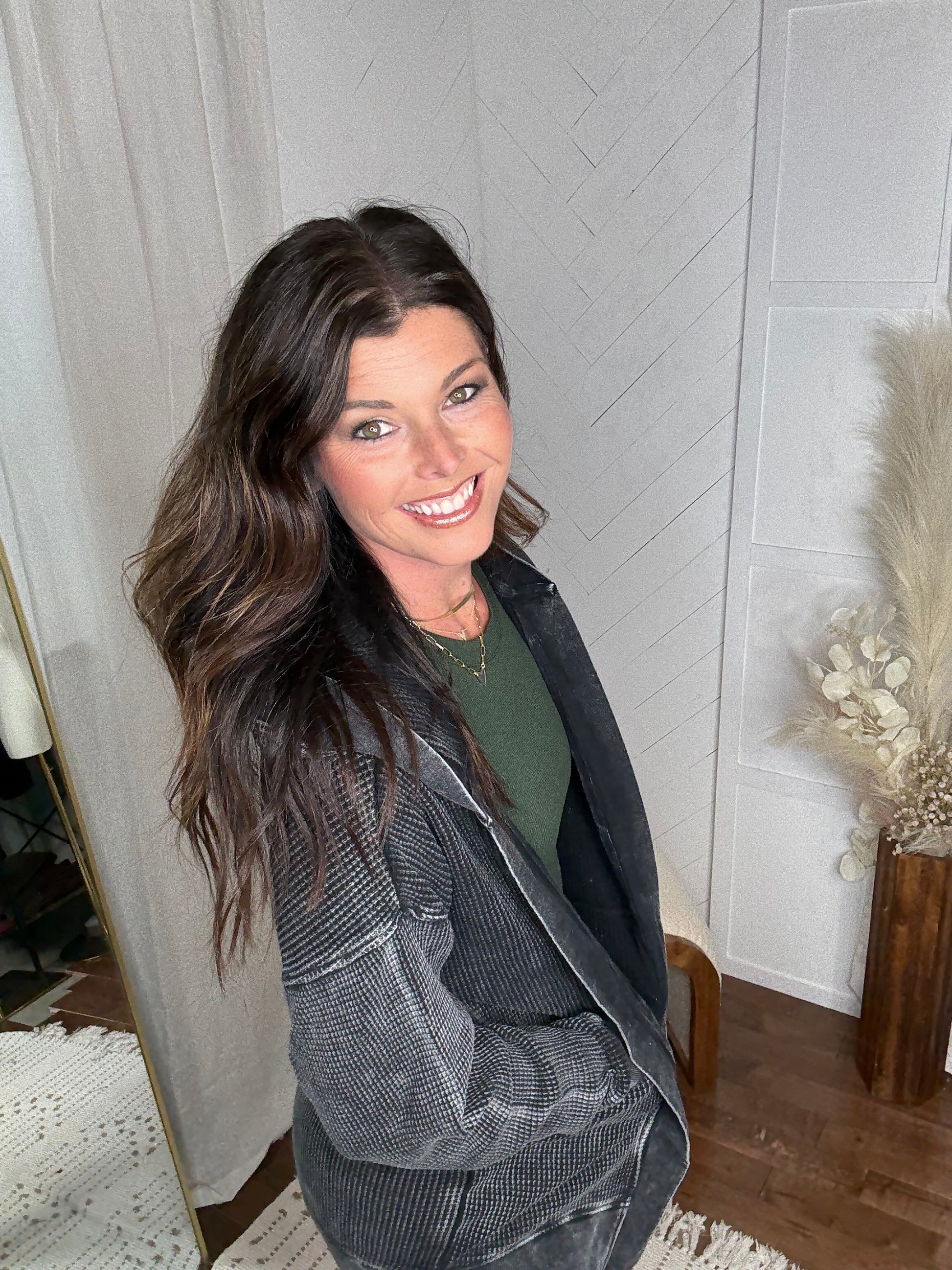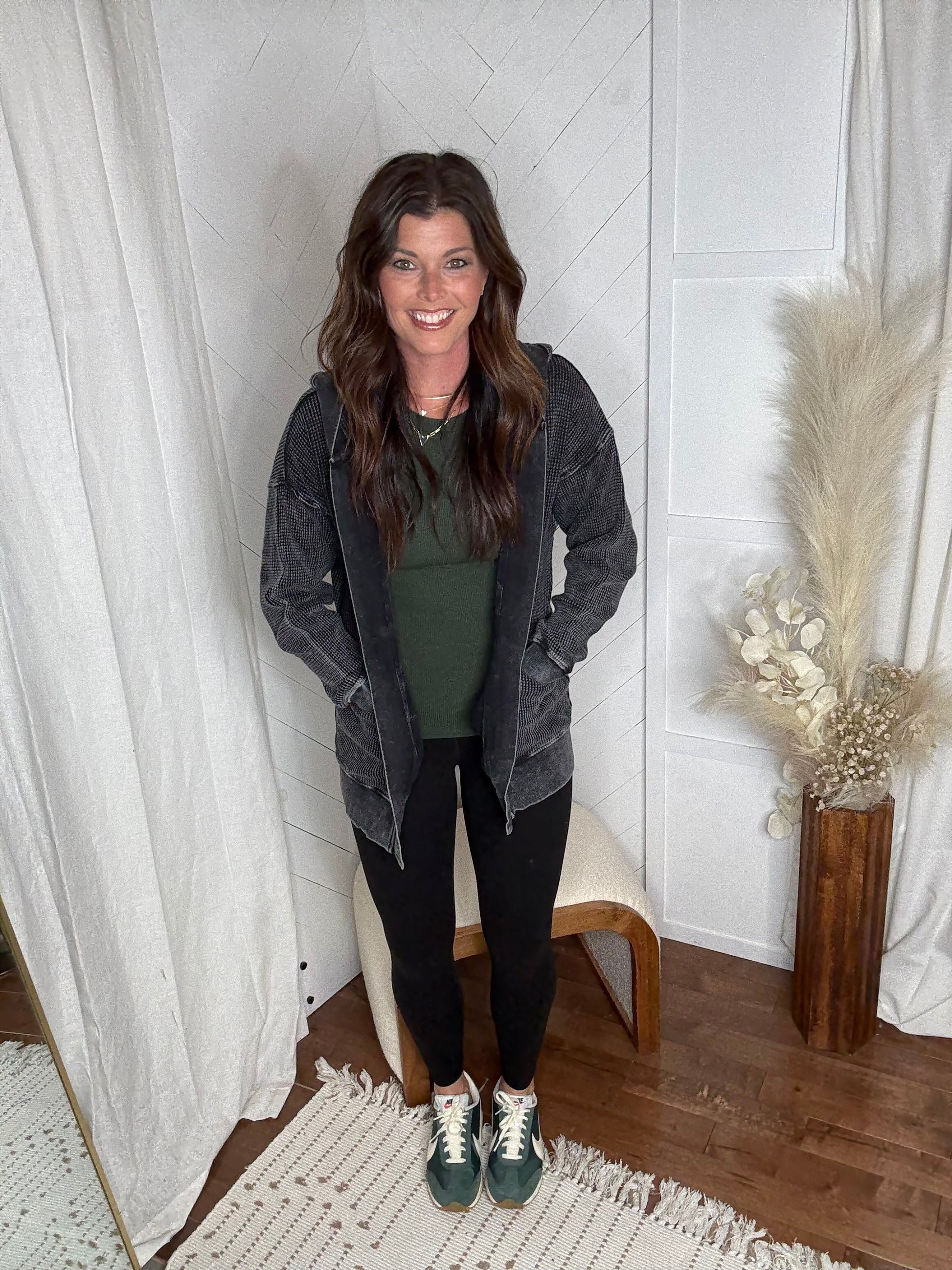 Look cool and feel cozy! This mineral-washed cardigan features a waffle knit design, side pockets, a hood, and drop sleeves for relaxed fit.
