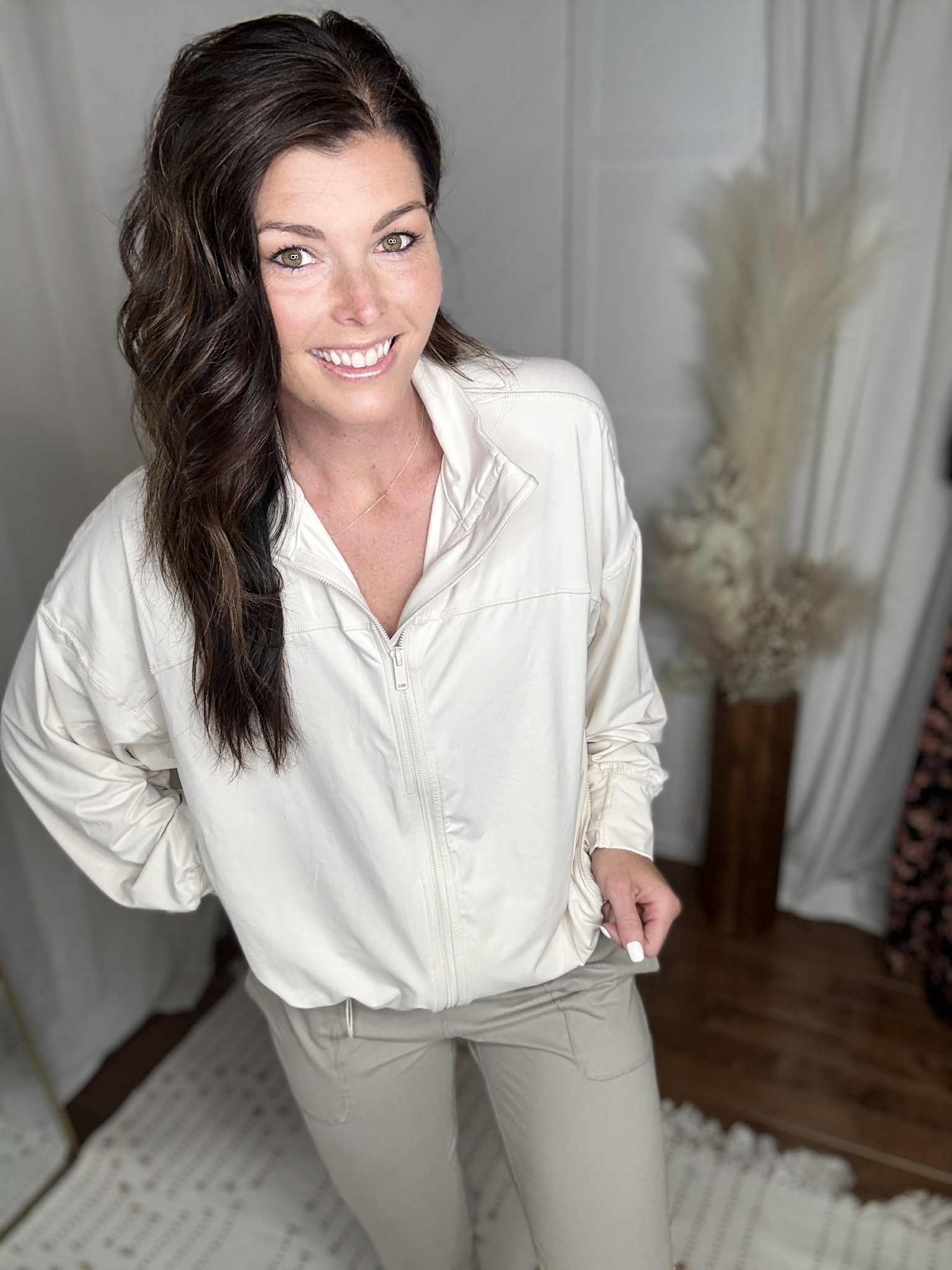 Meet your go-to layer for breezy days and on-the-go comfort. This lightweight zip-up features the most butter soft fabric around, a breathable back flap for added airflow, an adjustable drawstring waist for a flattering fit, and a sleek silhouette that moves with you. Perfect for morning walks, errands, or weekend adventures.